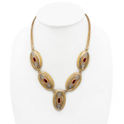 14K Női arany mandulaszemes piros-fehér cirkónia szemes nyakék