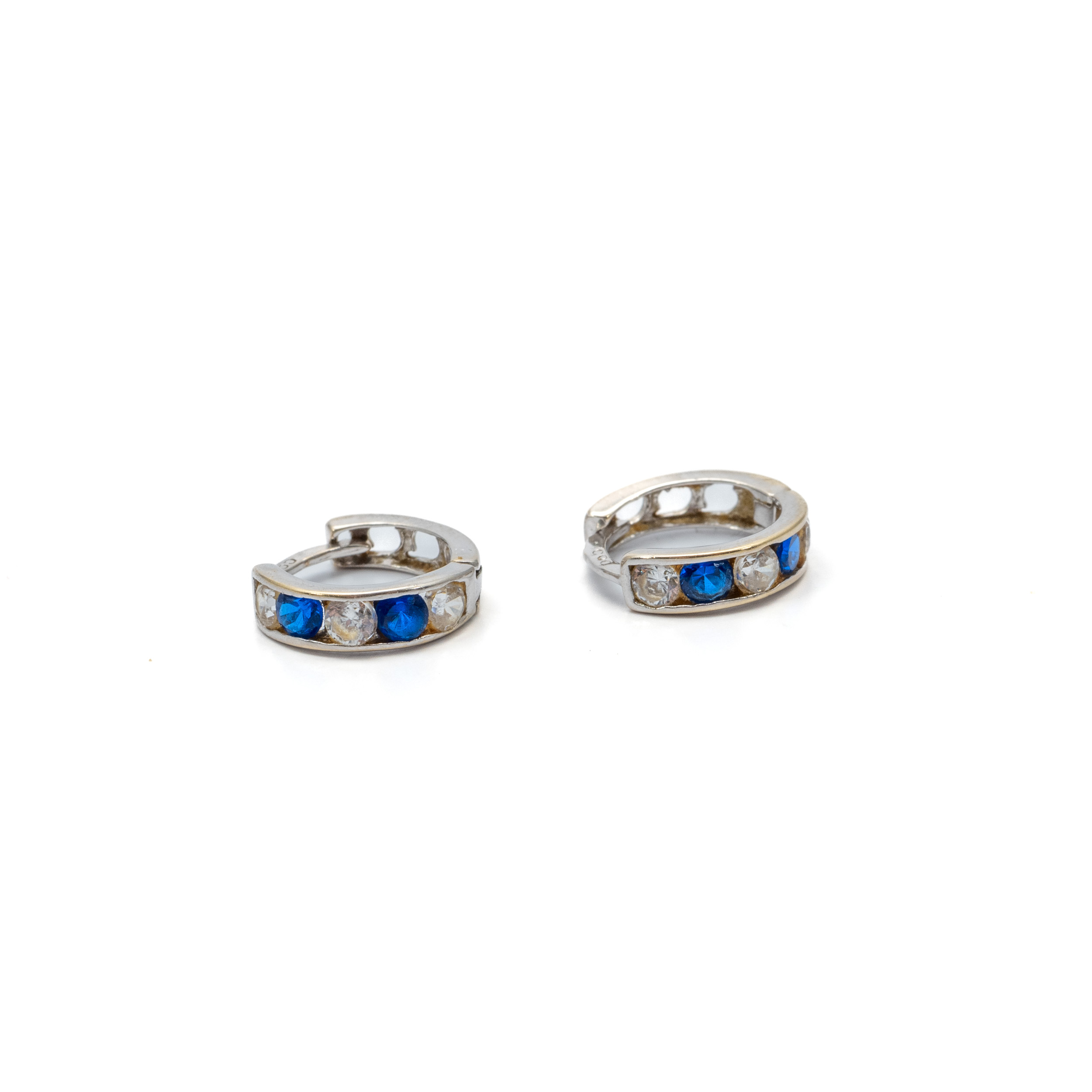 14K Gyerek arany kék-fehér cirkónia köves bepattintós fülbevaló