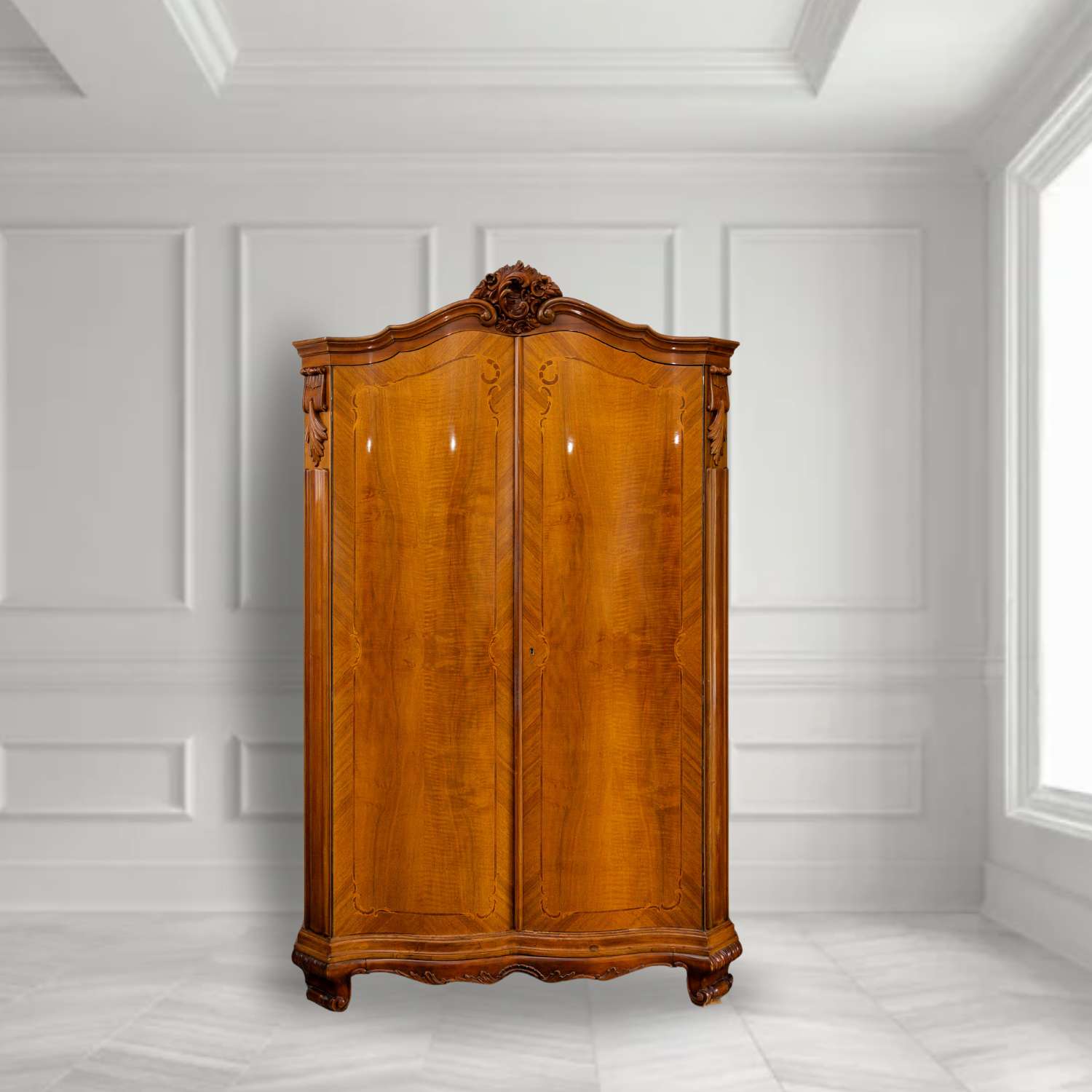 1928-ban készült egyedi diófa intarziás akasztós szekrény