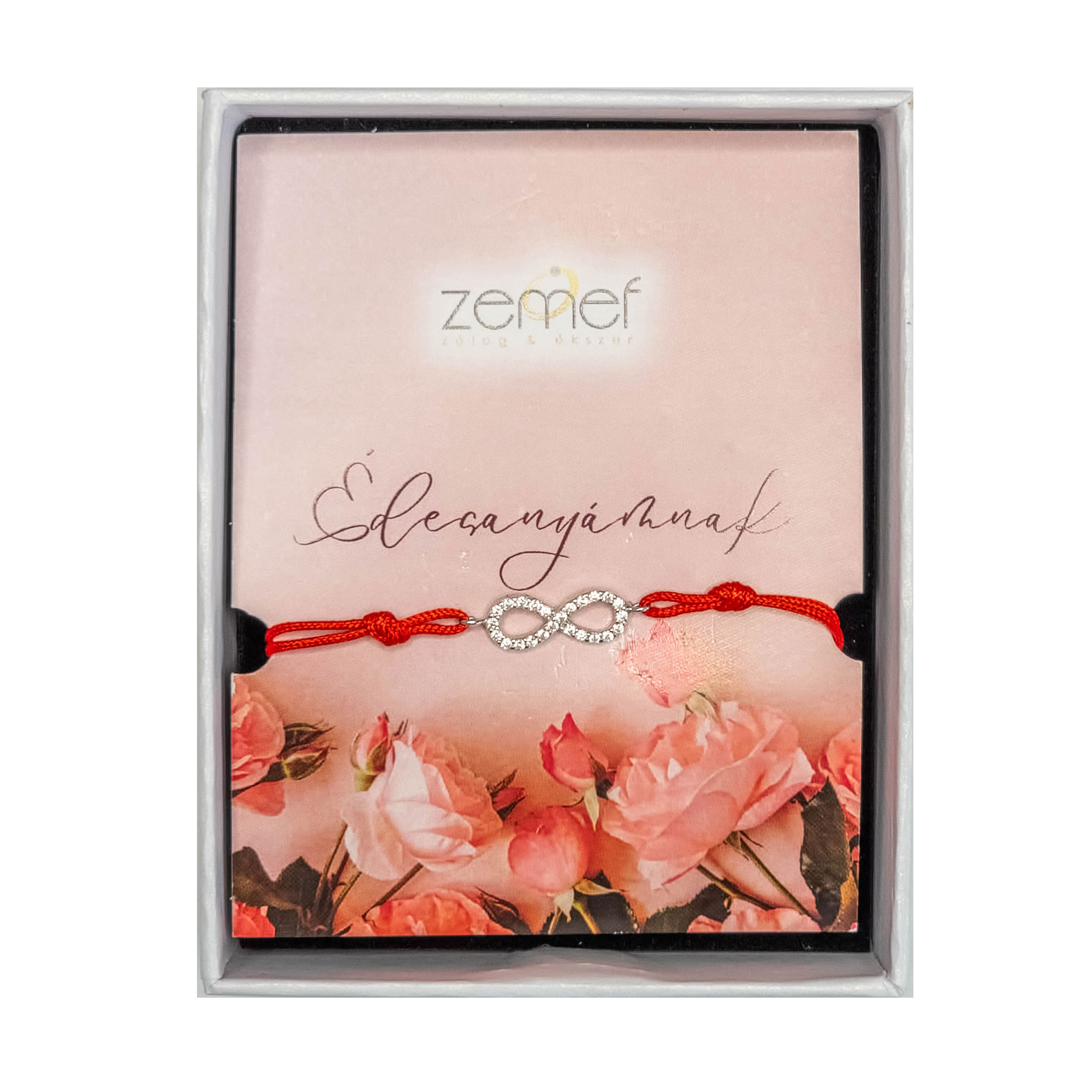 A zsinóros órakísérő ezüst, 925-ös finomságú  végtelen jeles karkötő. A karkötőt választható szöveggel és díszdobozzal együtt postázzuk. Az alábbiak közül válaszd ki a számodra megfelelő üzenet kártyát.