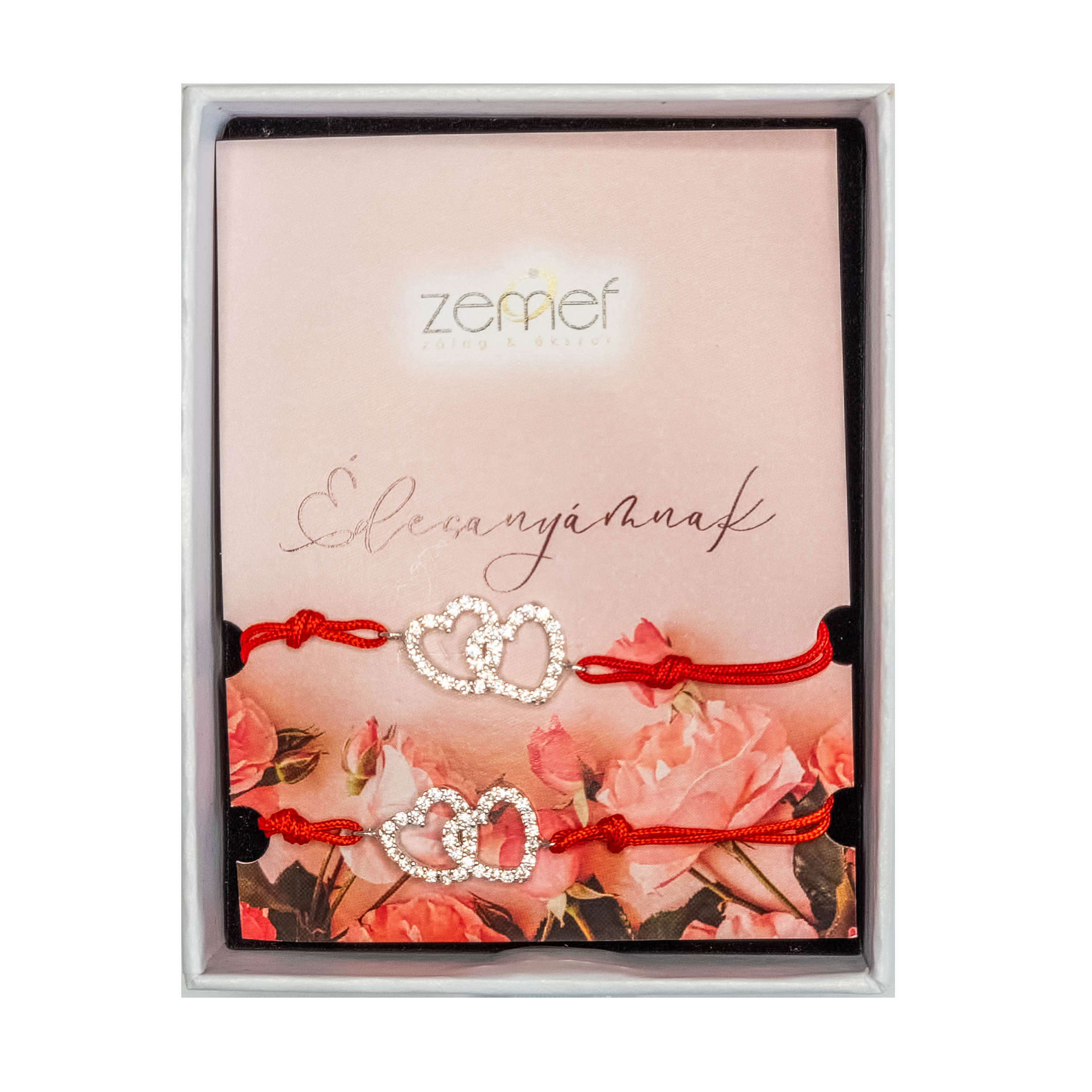 Az ár két karkötőt tartalmaz. A zsinóros órakísérő ezüst, 925-ös bogyókkal és szivecskével díszítve. A karkötőt választható szöveggel és díszdobozzal együtt postázzuk. Az alábbiak közül válaszd ki a számodra megfelelő üzenet kártyát.