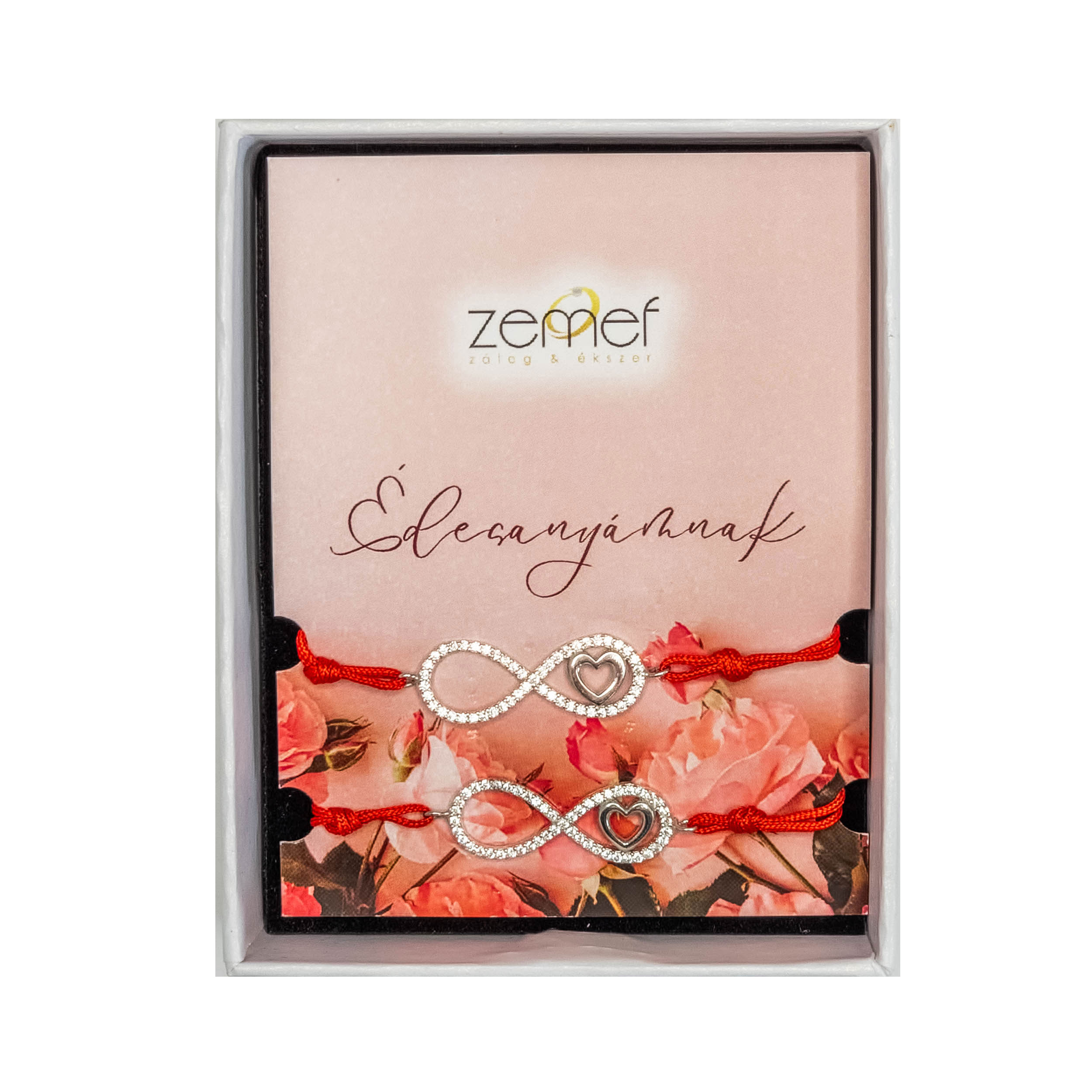 Anyák napi páros női fehér ezüst köves végtelen jeles óra kísérő piros