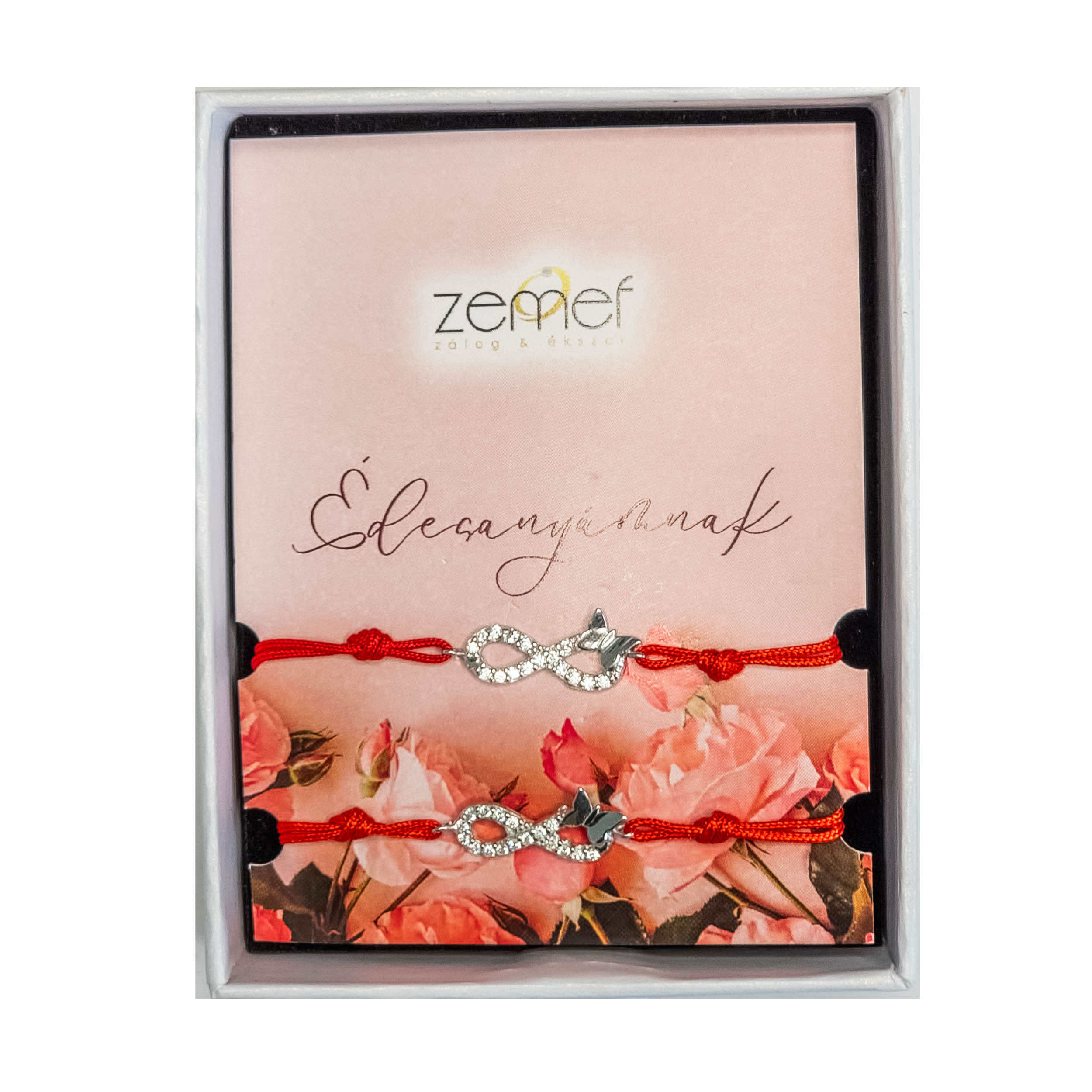 Anyák napi páros női fehér ezüst köves végtelen jeles óra kísérő piros