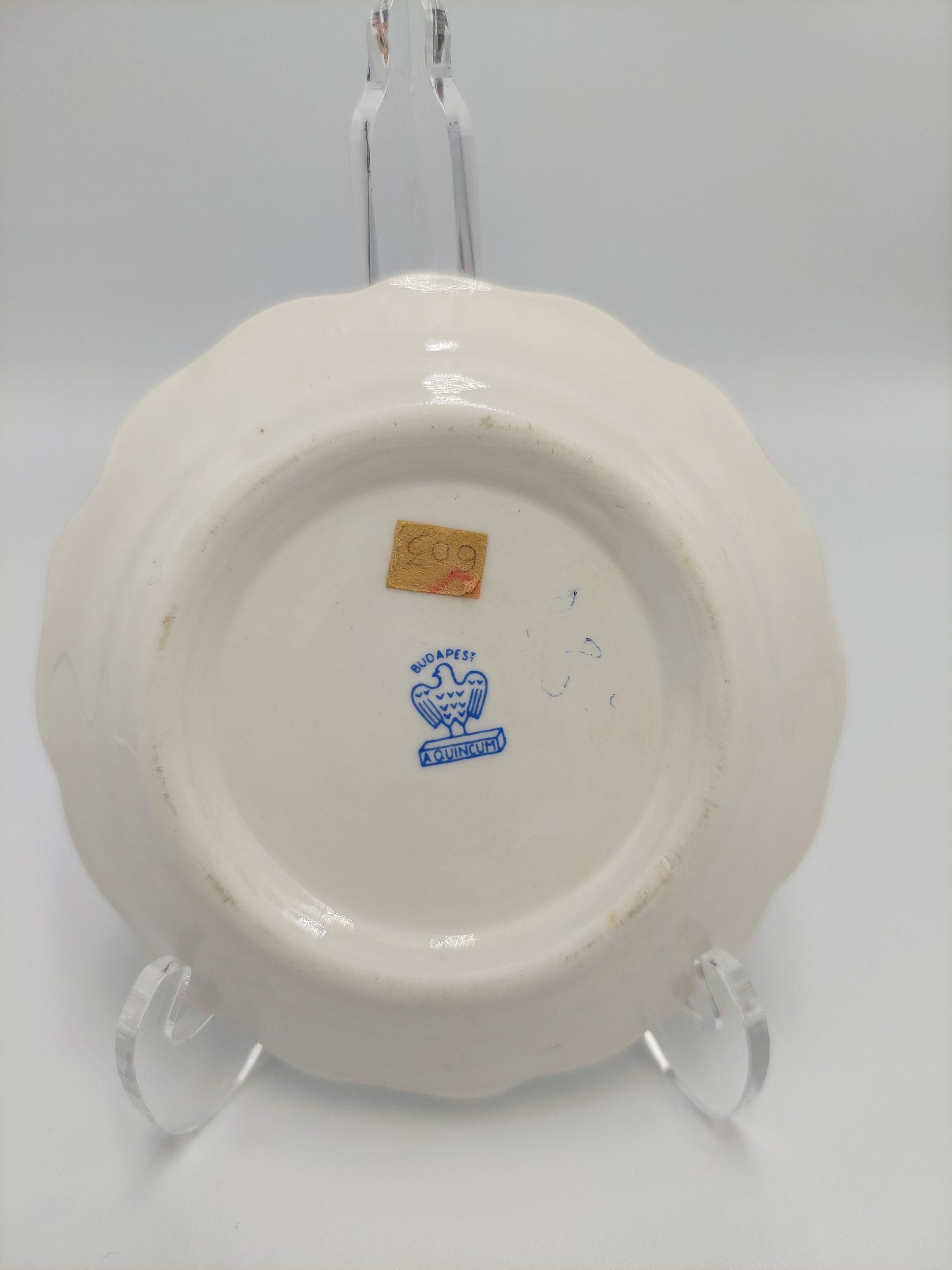 Aquincumi Kistányér virág mintával. Hibátlan, sérülésektől mentes. Átmérője: 9,5 cm