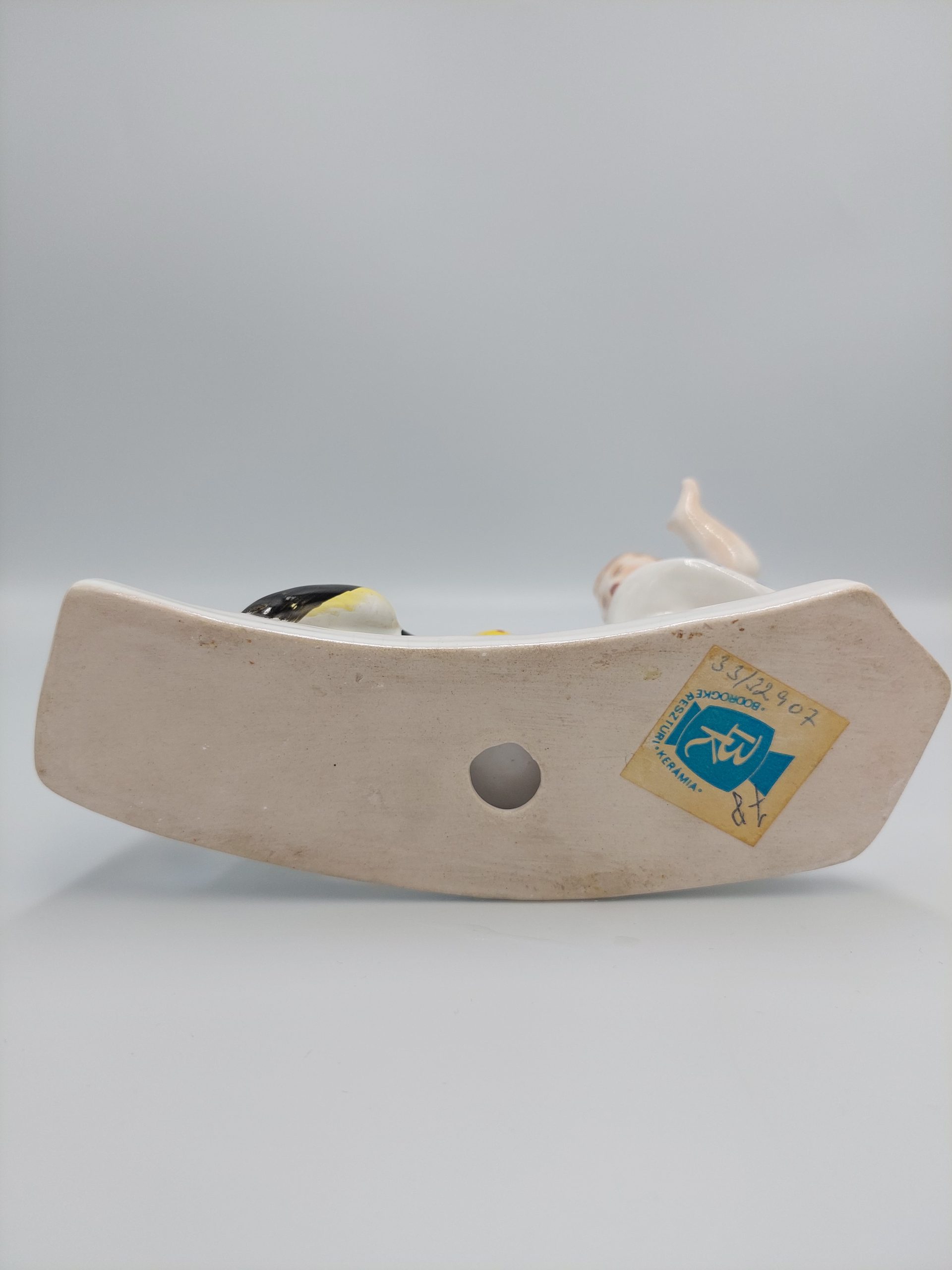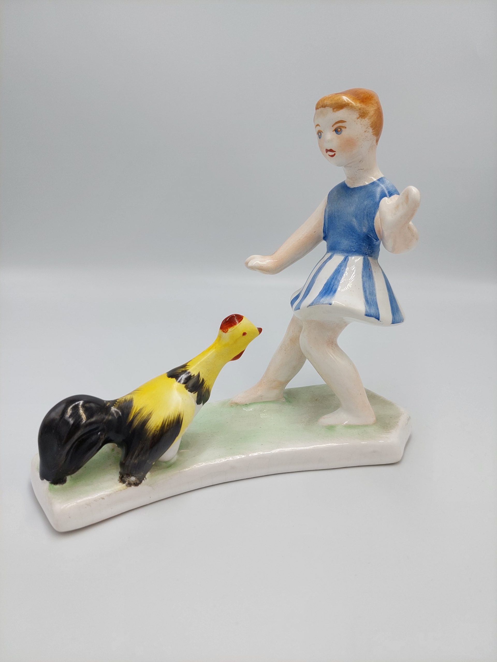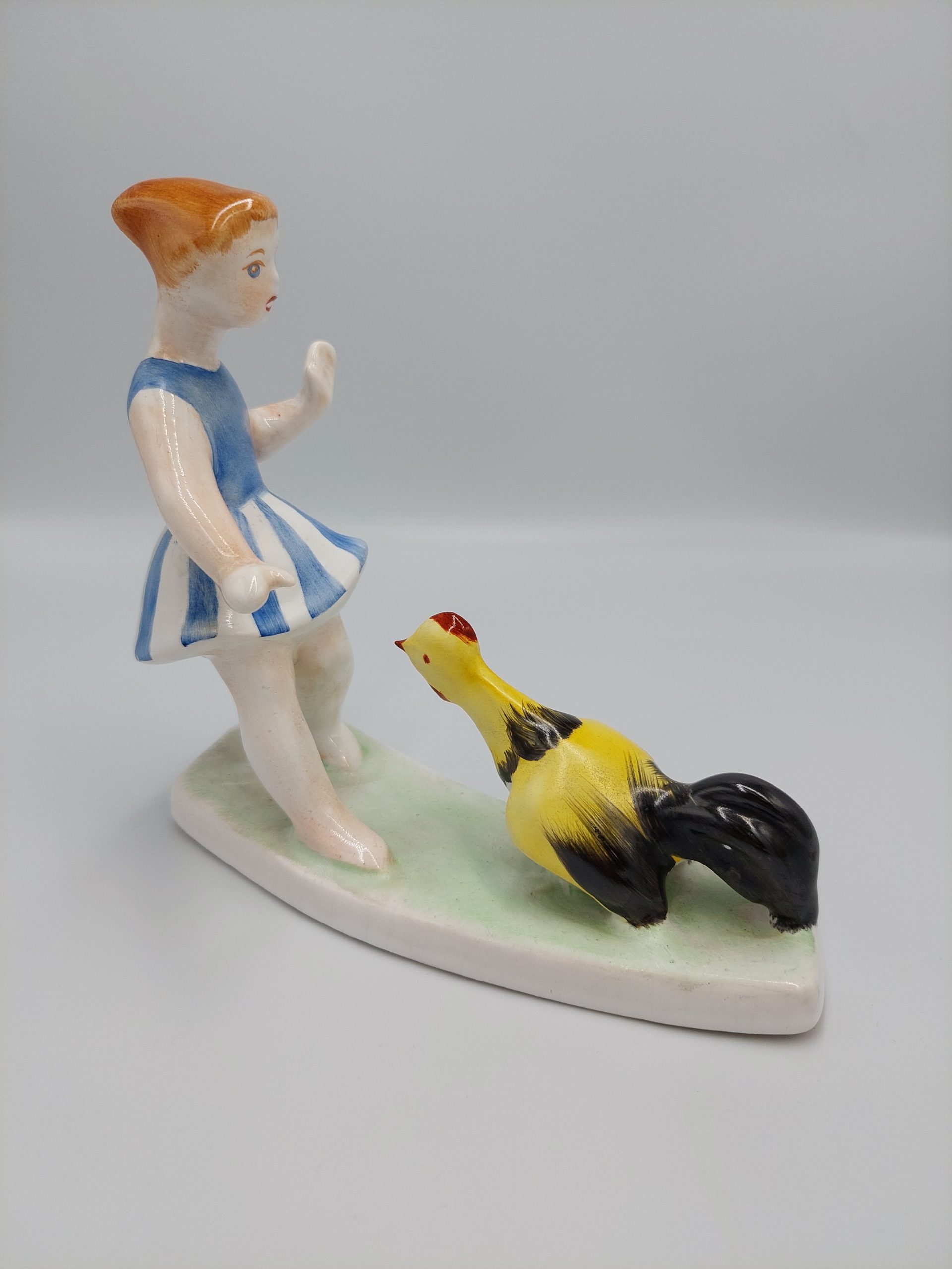 Bodrogkeresztúri kerámia, Kislány kakassal.Hibátlan, teljesen ép. Mérete: 16,5×15 cm