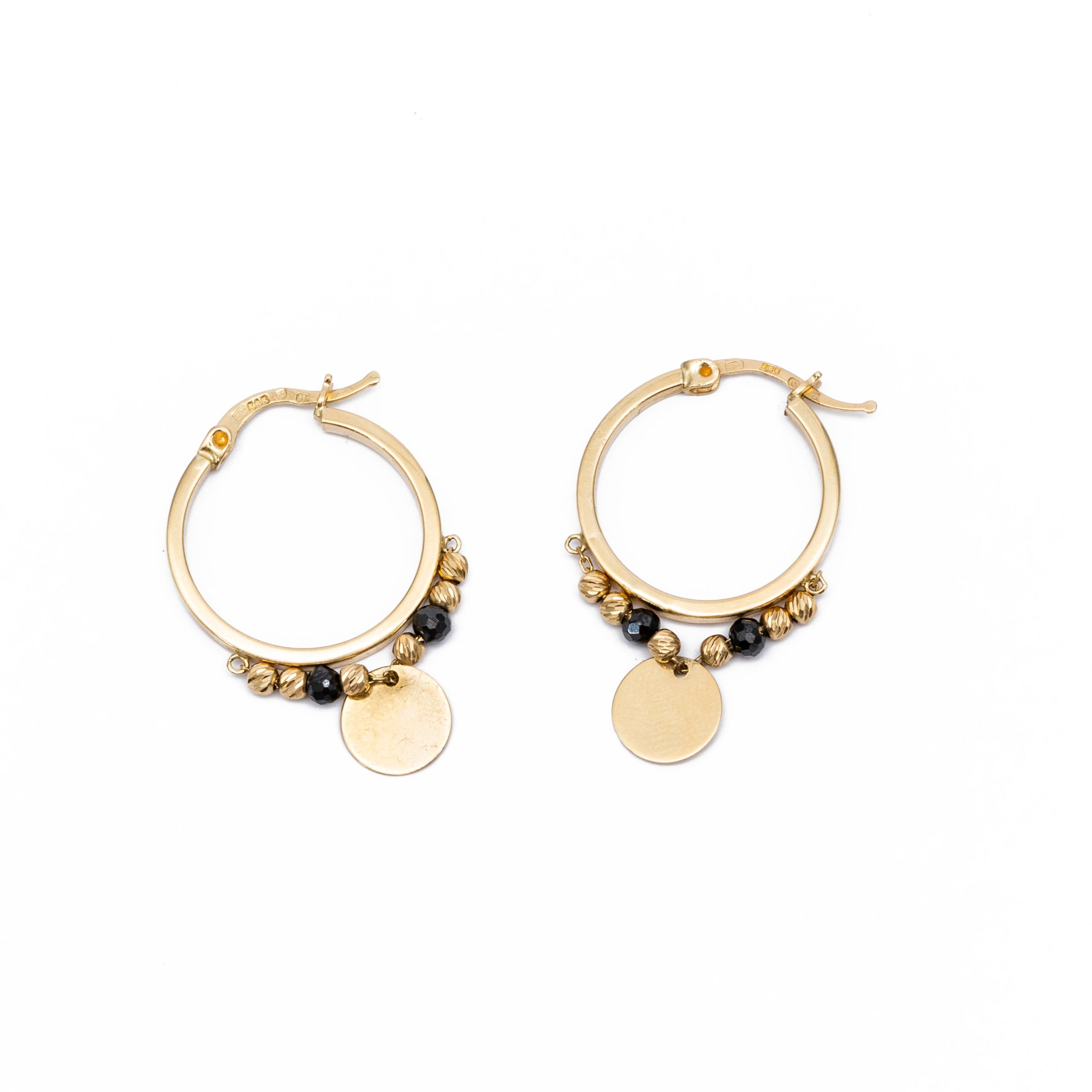 14K Női arany karika bogyós villás kapcsos fülbevaló