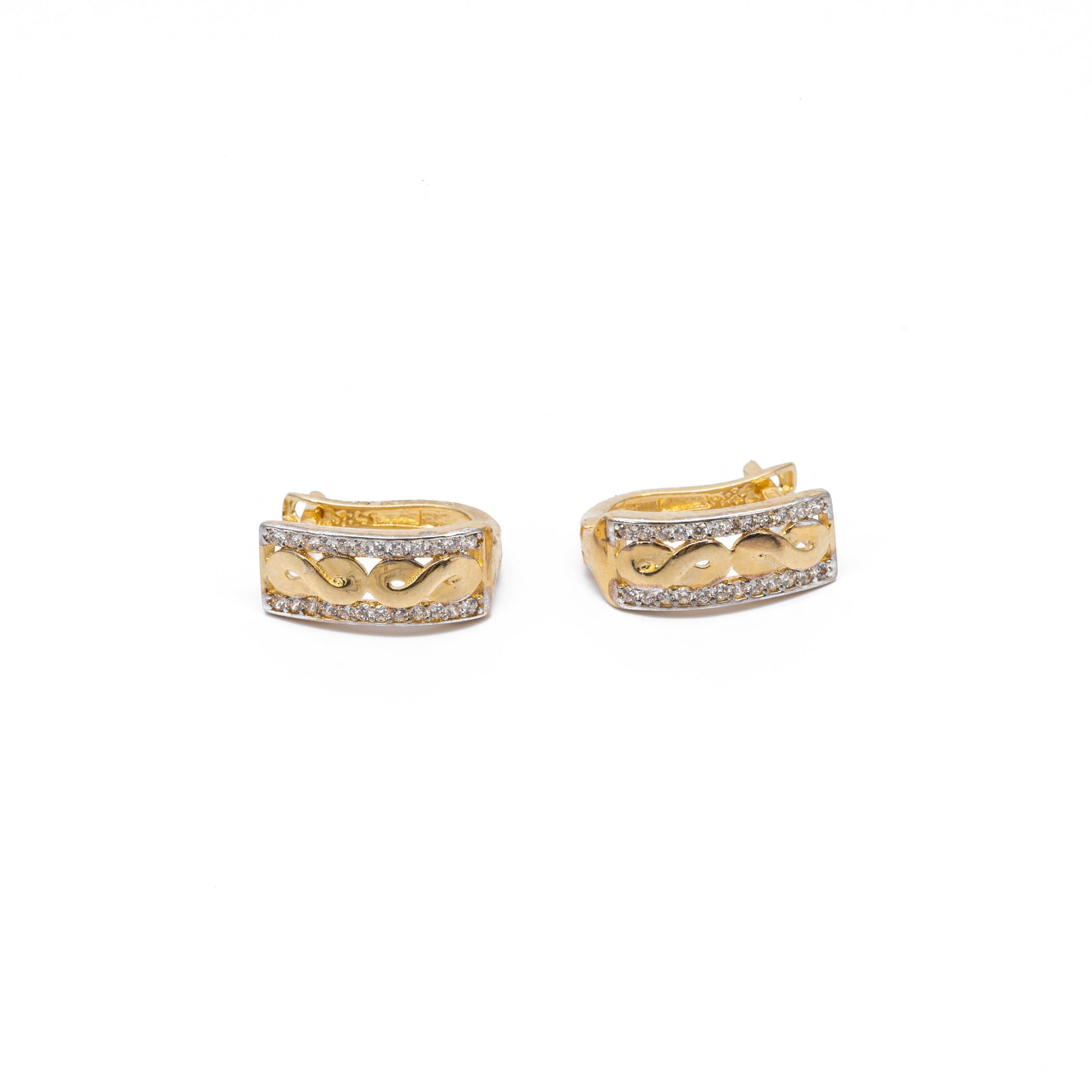 14K Női arany fantázia cirkónia köves francia kapcsos fülbevaló