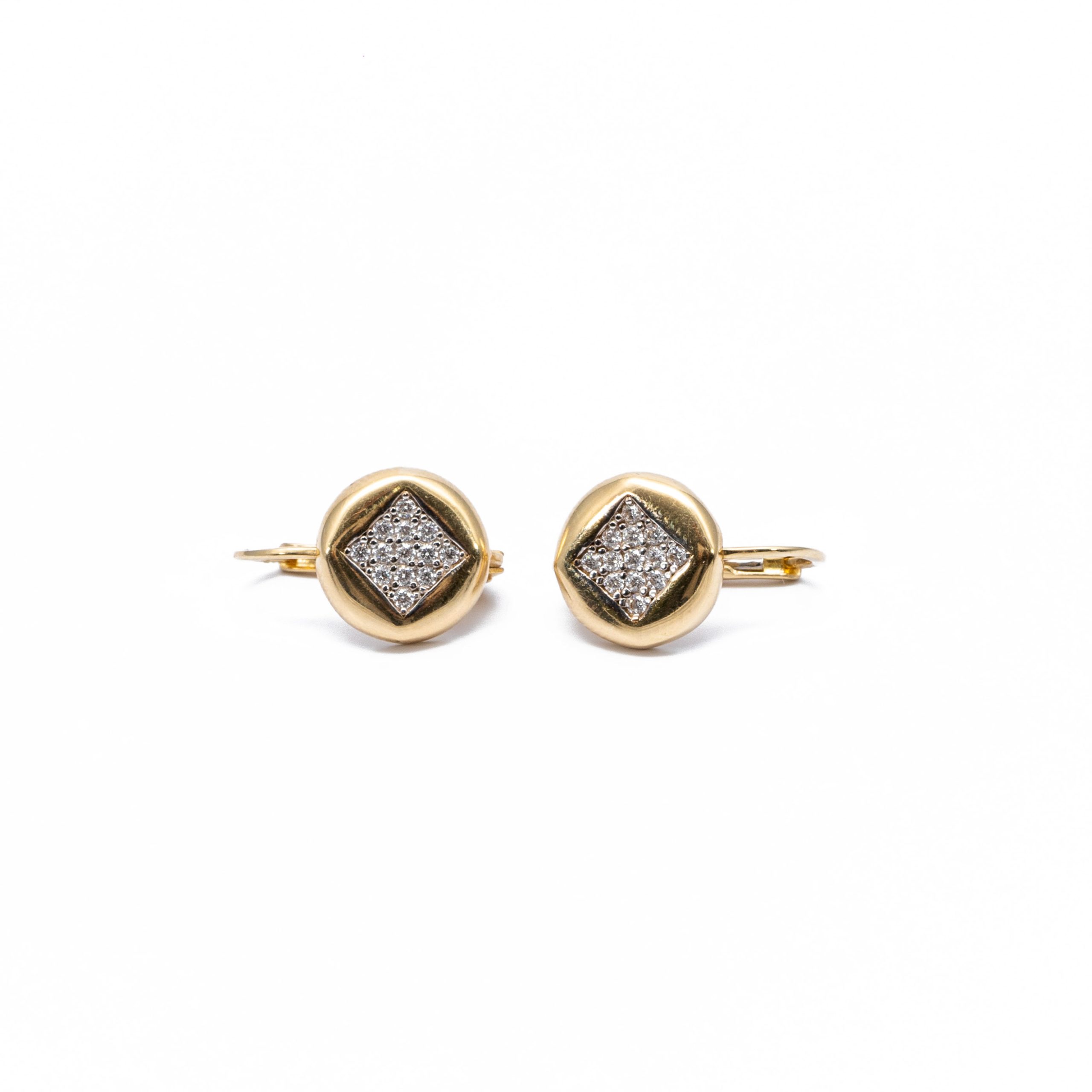 14K Női arany kerek kocka mintás cirkónia köves patentzáras fülbevaló