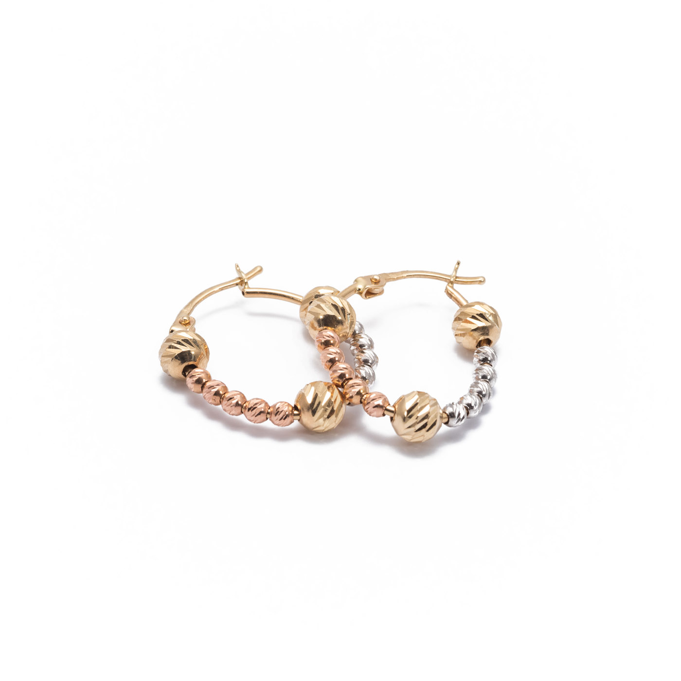 14K Női arany-fehérarany karika bogyós fülbevaló