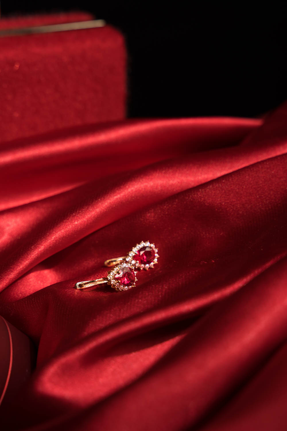 14K Női arany ciklámen cirkónia köves francia kapcsos fülbevaló
