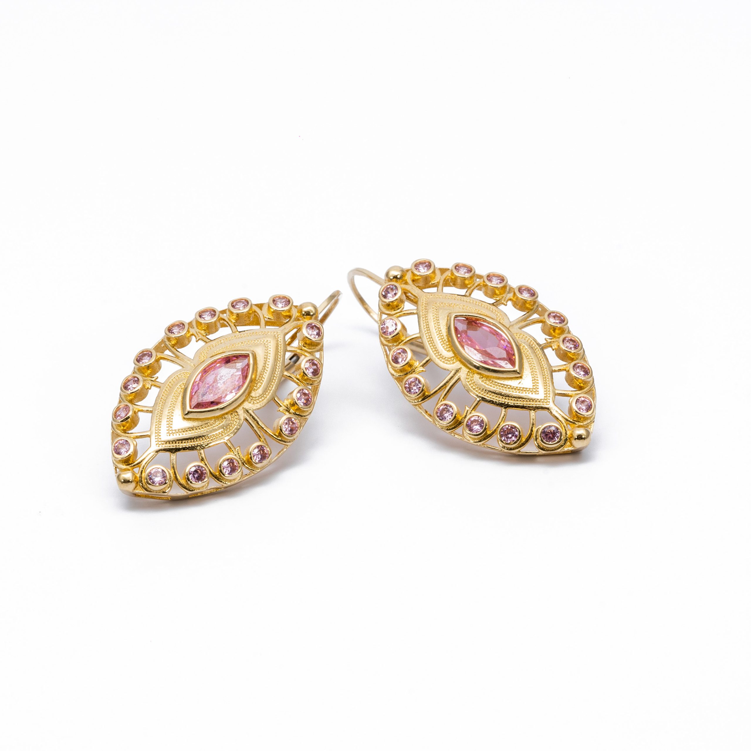 14K Női arany fantázia rózsaszín cirkónia köves patentzáras fülbevaló