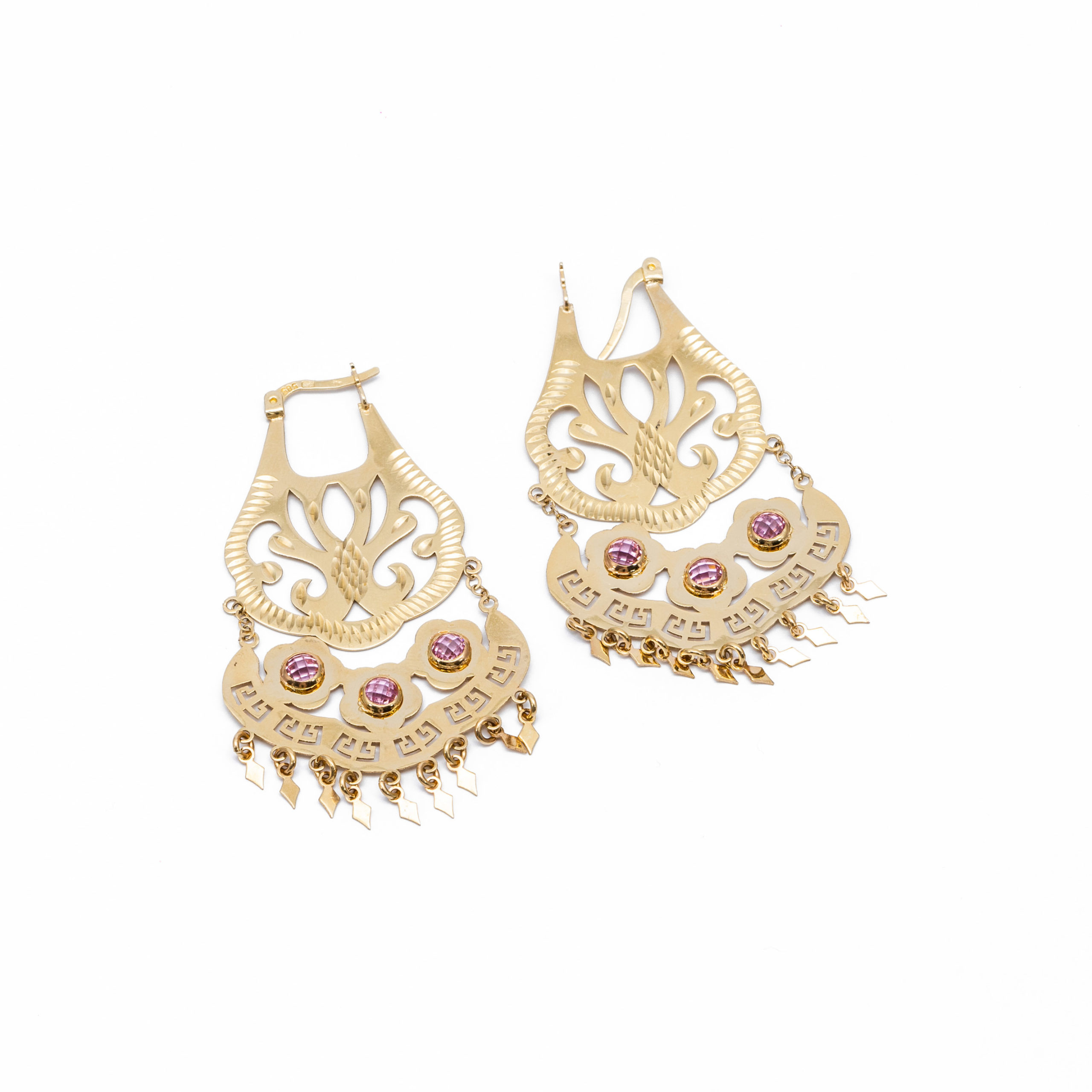 14K Női arany fantázia rózsaszín cirkónia köves villás kapcsos fülbevaló