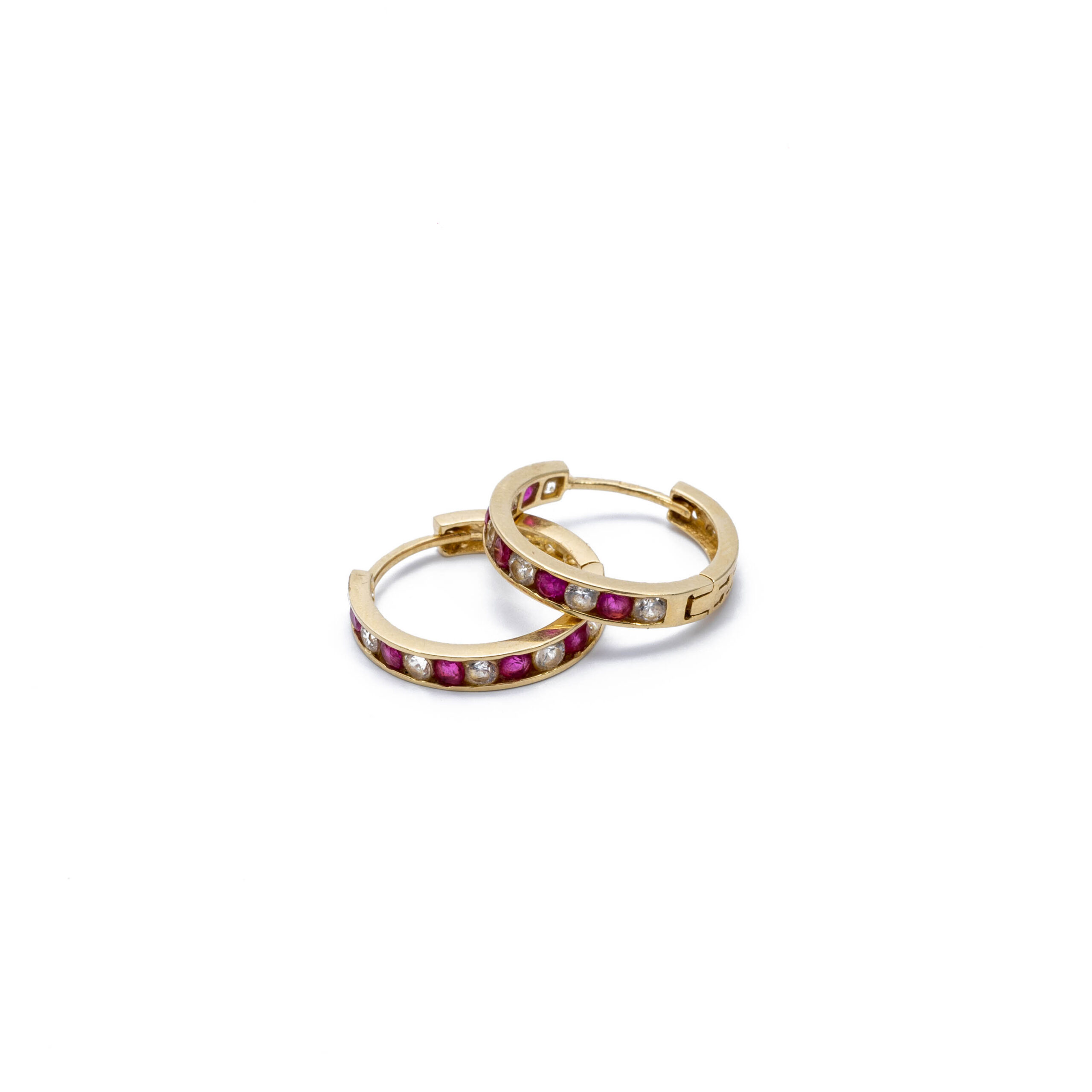 14K Gyerek arany fehér-ciklámen cirkónia köves bepattintós fülbevaló