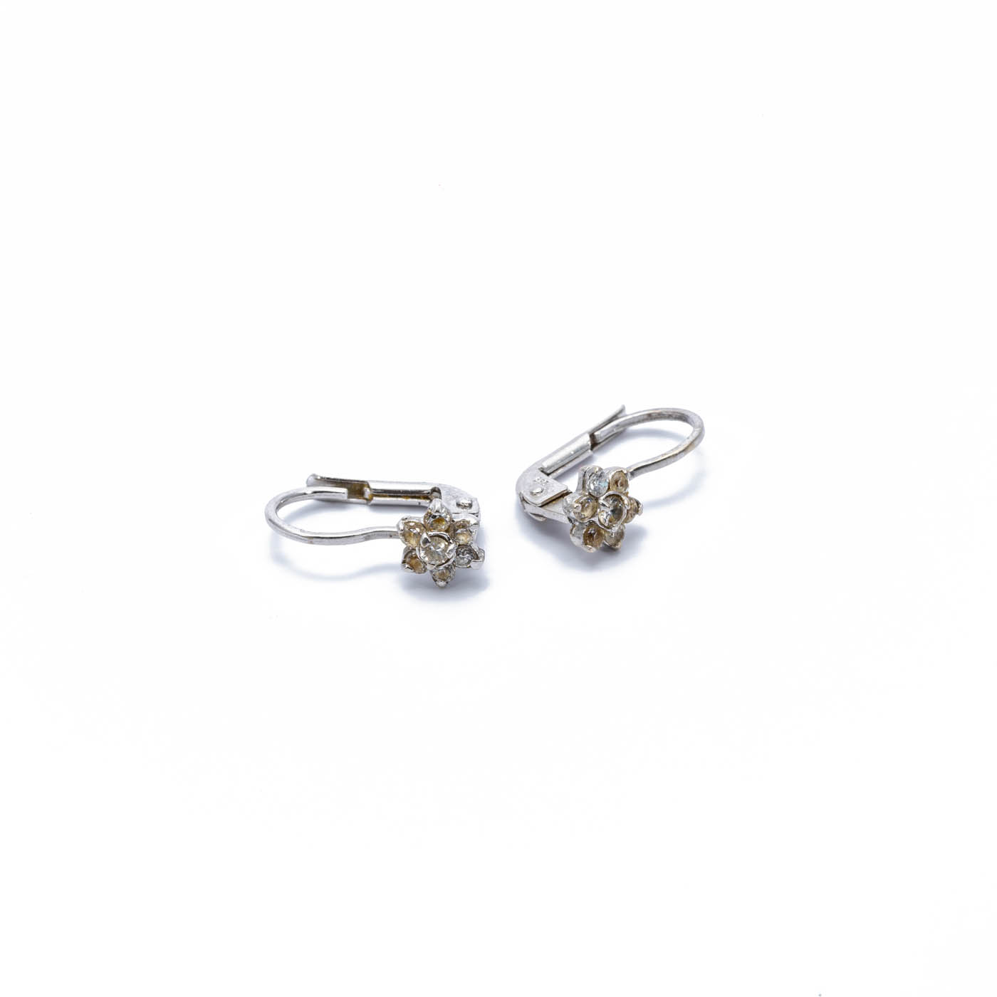 14K Gyerek fehérarany virág cirkónia köves patentzáras fülbevaló