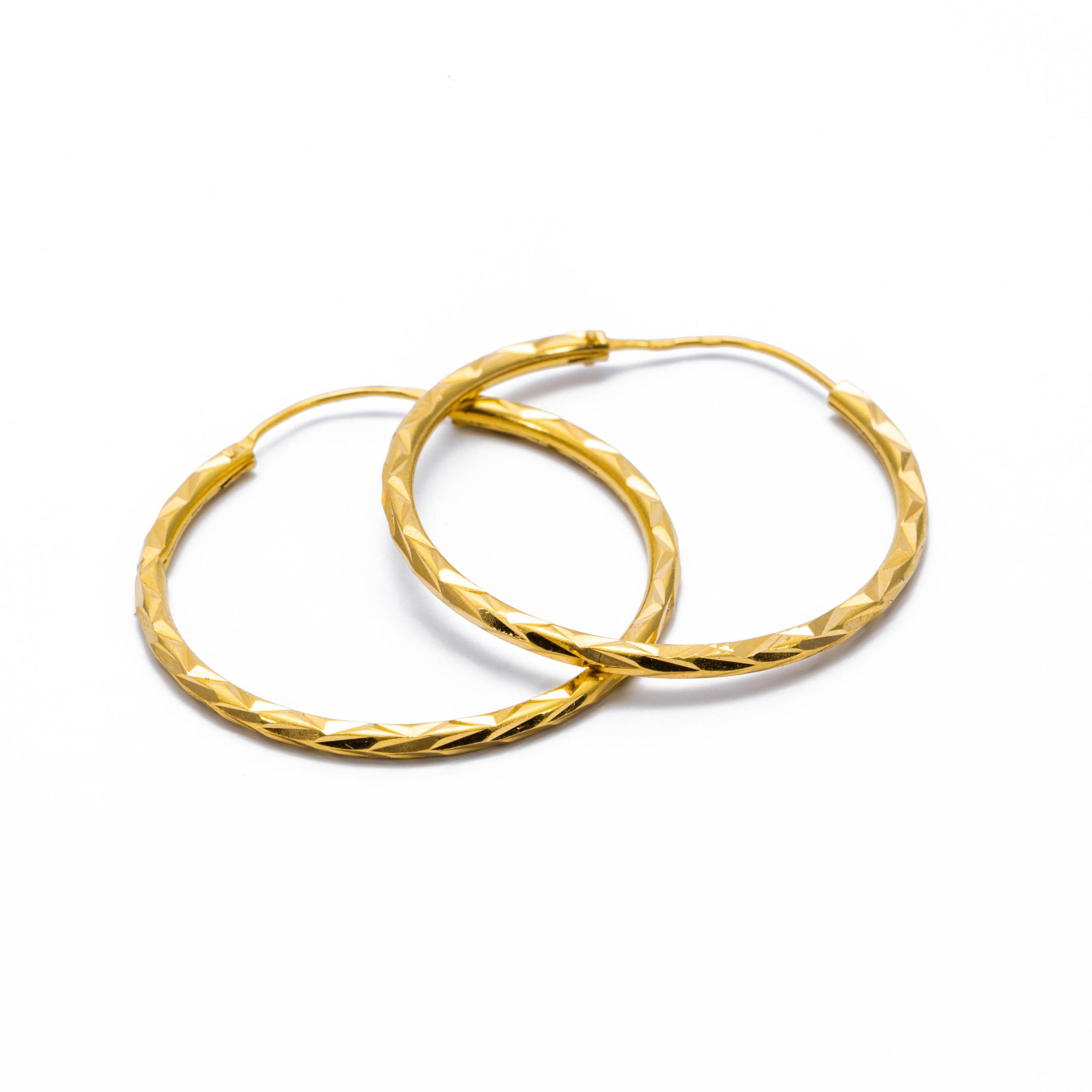 14K Női arany karika vésett csőzáras kapcsos fülbevaló