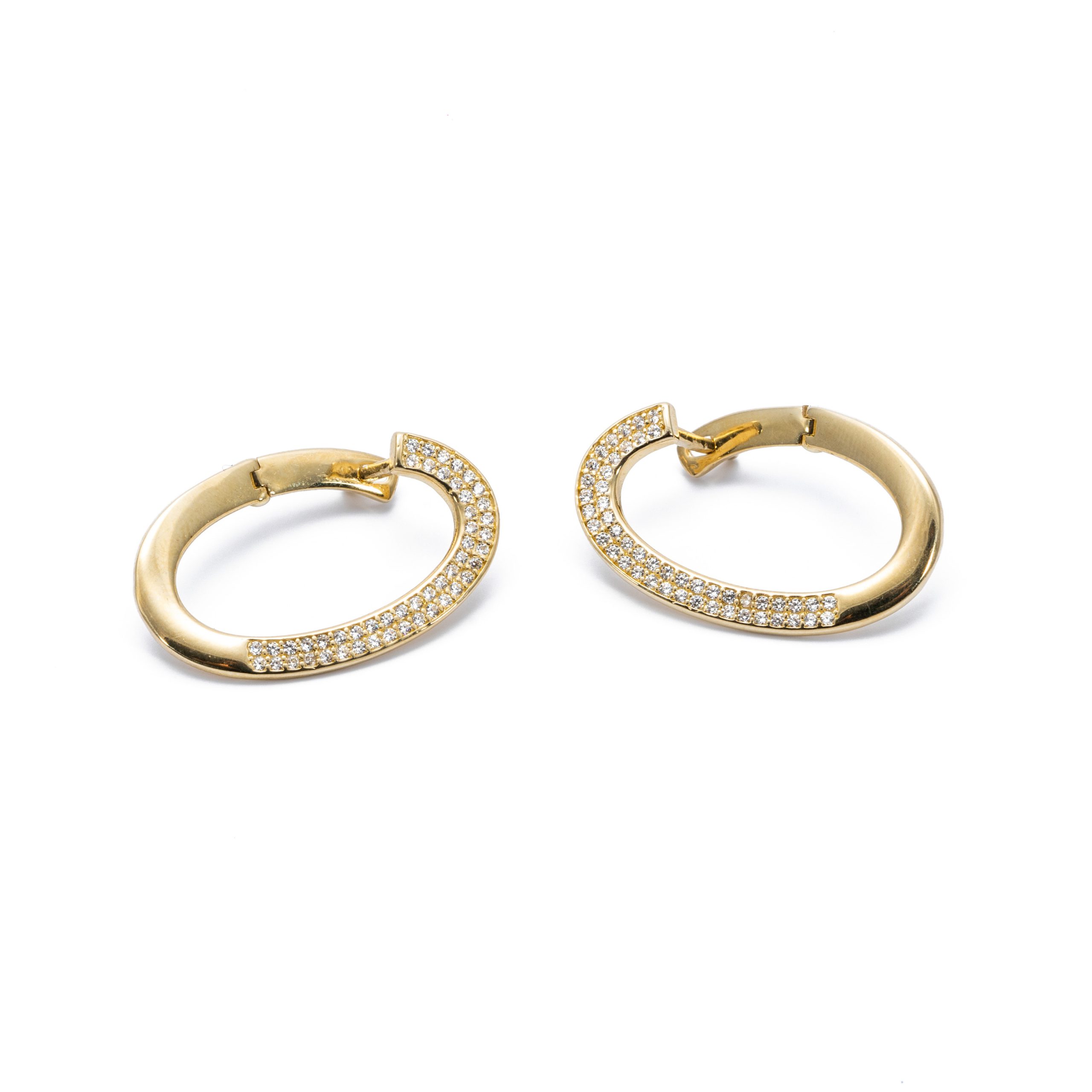 14K Női arany ovális cirkónia köves bepattintós fülbevaló
