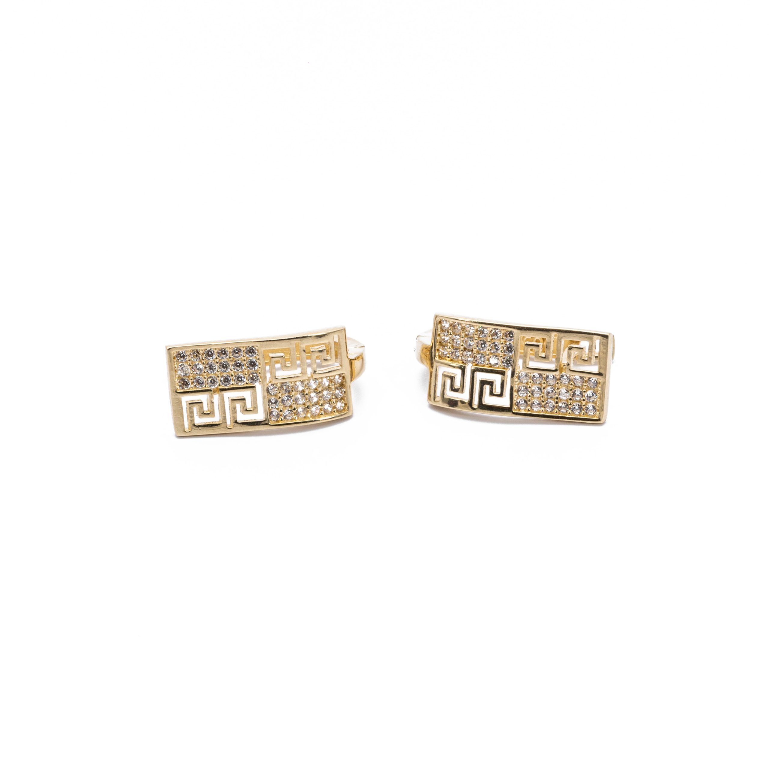 14K Női arany görög mintás fantázia cirkónia köves francia kapcsos fülbevaló