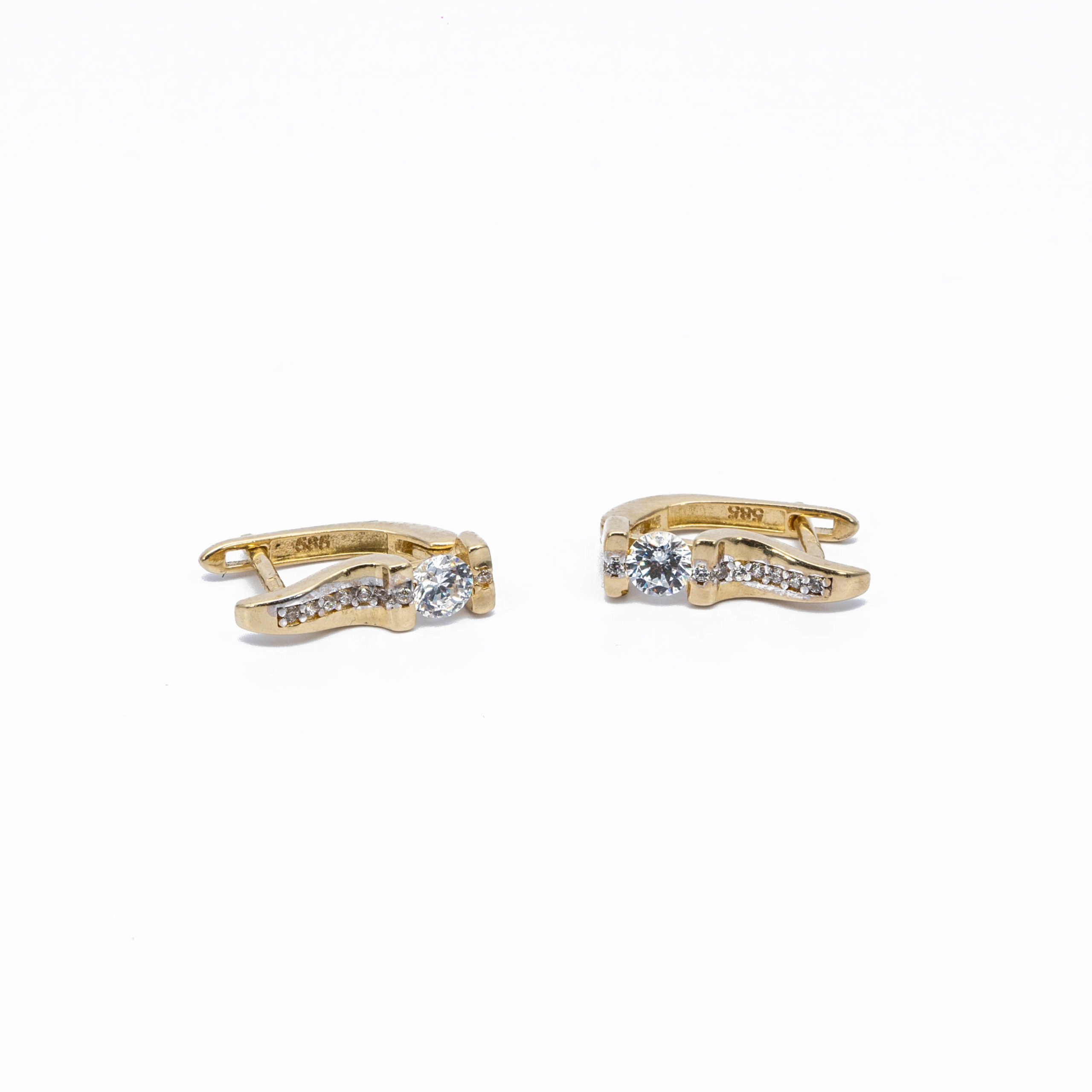 14K Női arany fantázia cirkónia köves francia kapcsos fülbevaló