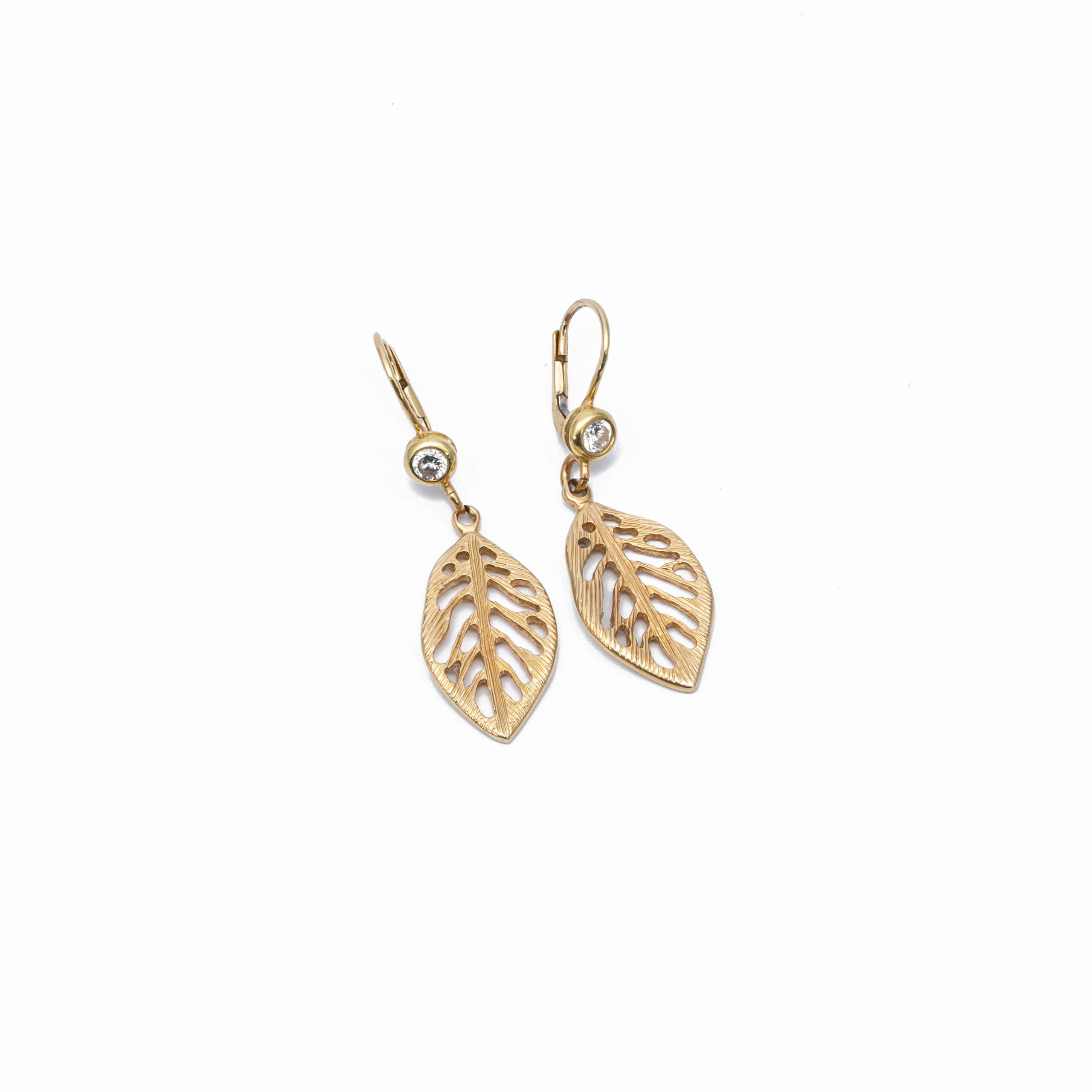 14K Női arany levél cirkónia köves patentzáras fülbevaló