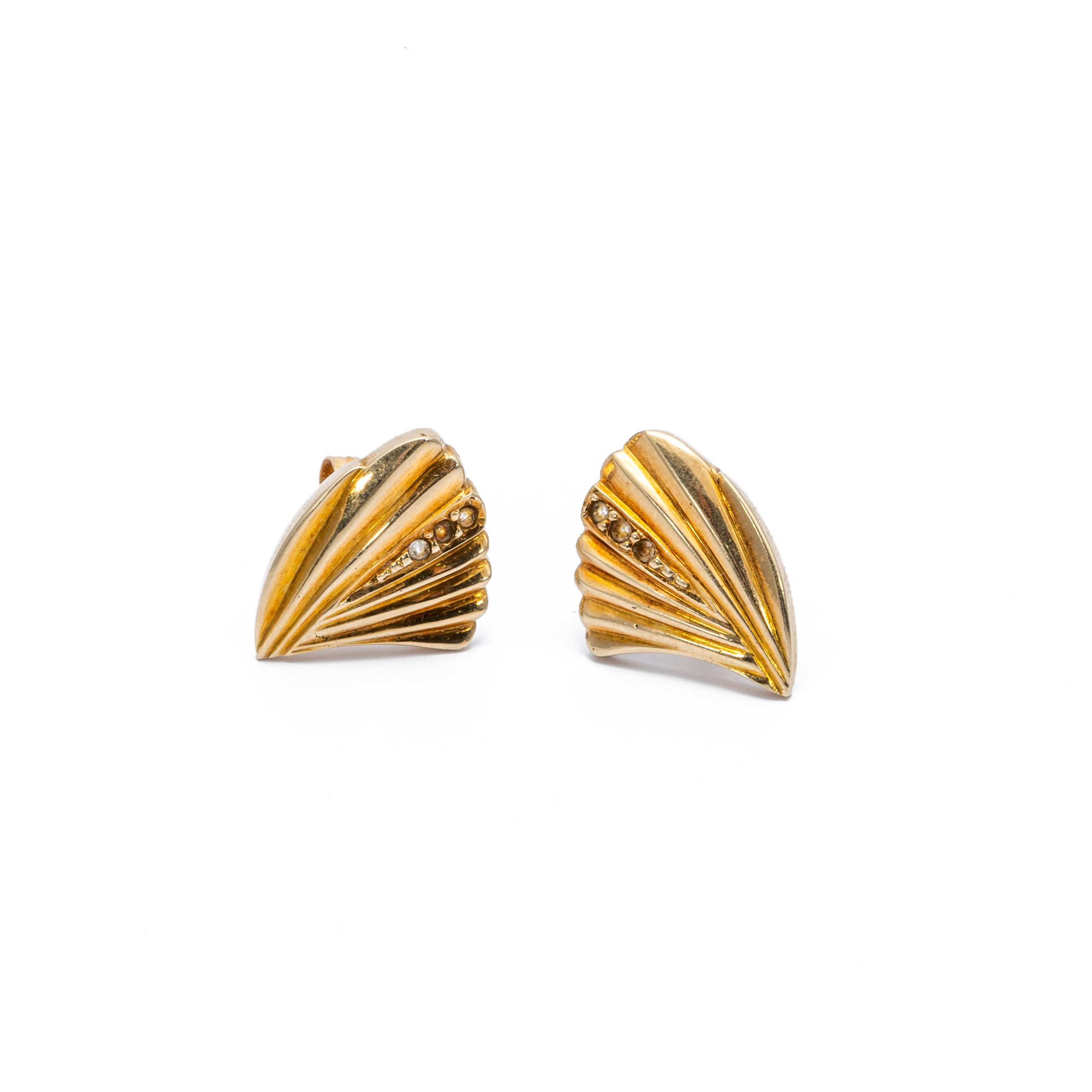 14K Női arany legyező formájú cirkónia köves stekkeres fülbevaló