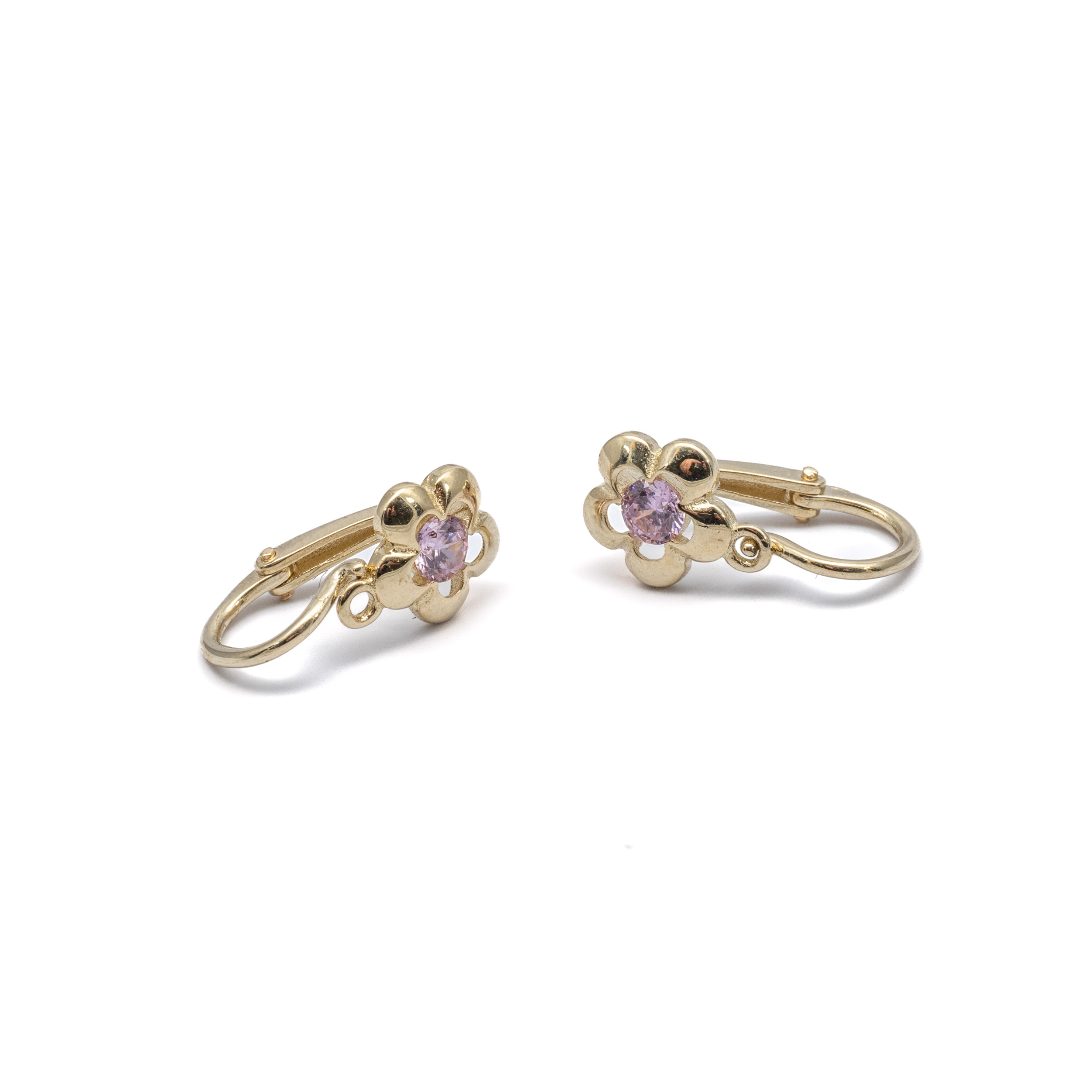 14K Gyerek arany rózsaszín cirkónia köves elől kapcsos fülbevaló
