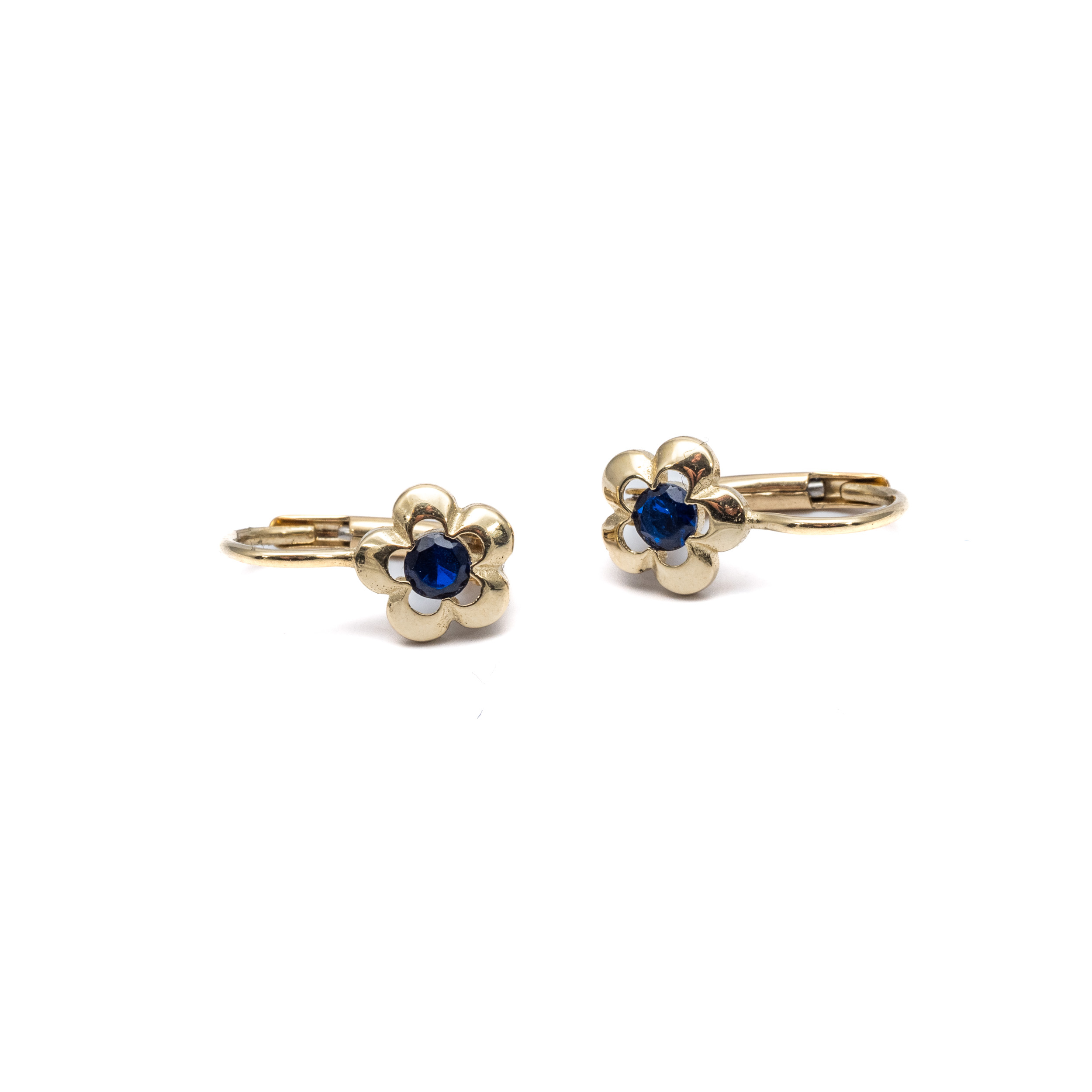 14K Gyerek arany virág kék cirkónia köves patentzáras fülbevaló