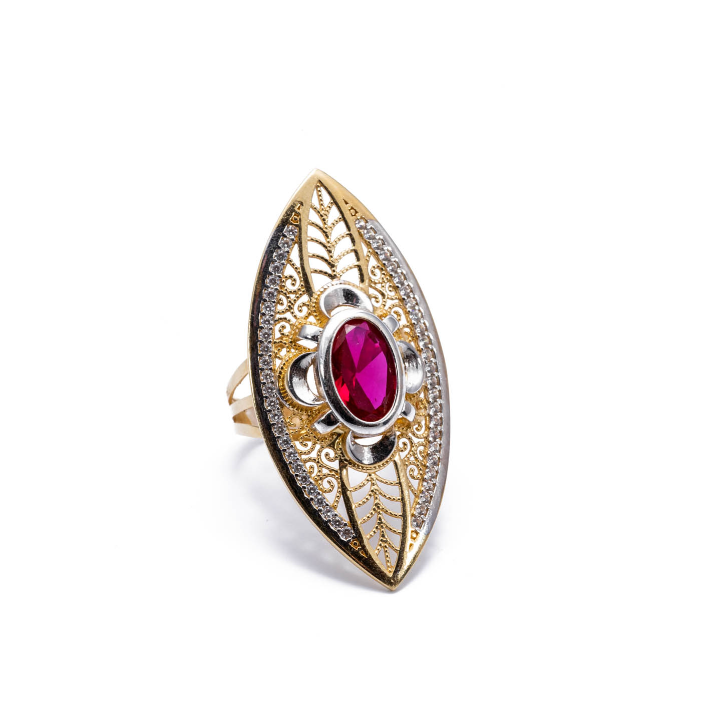 14K Női arany-fehérarany ciklámen-fehér cirkónia köves gyűrű