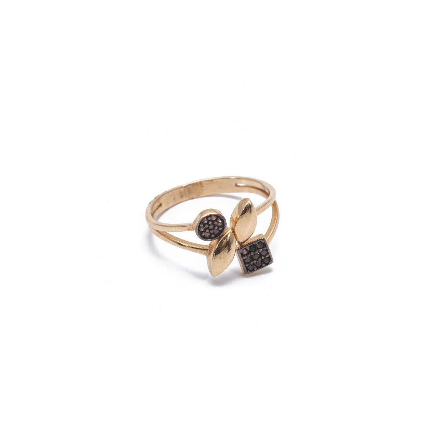 14K Női arany fantázia gyűrű barna cirkónia kövekkel