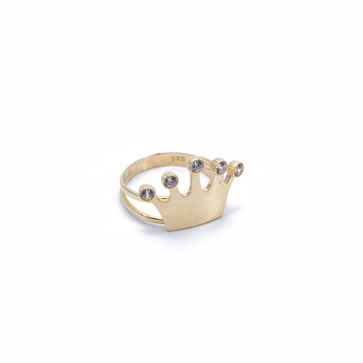 14K Női arany korona motívumos gyűrű cirkónia kövekkel