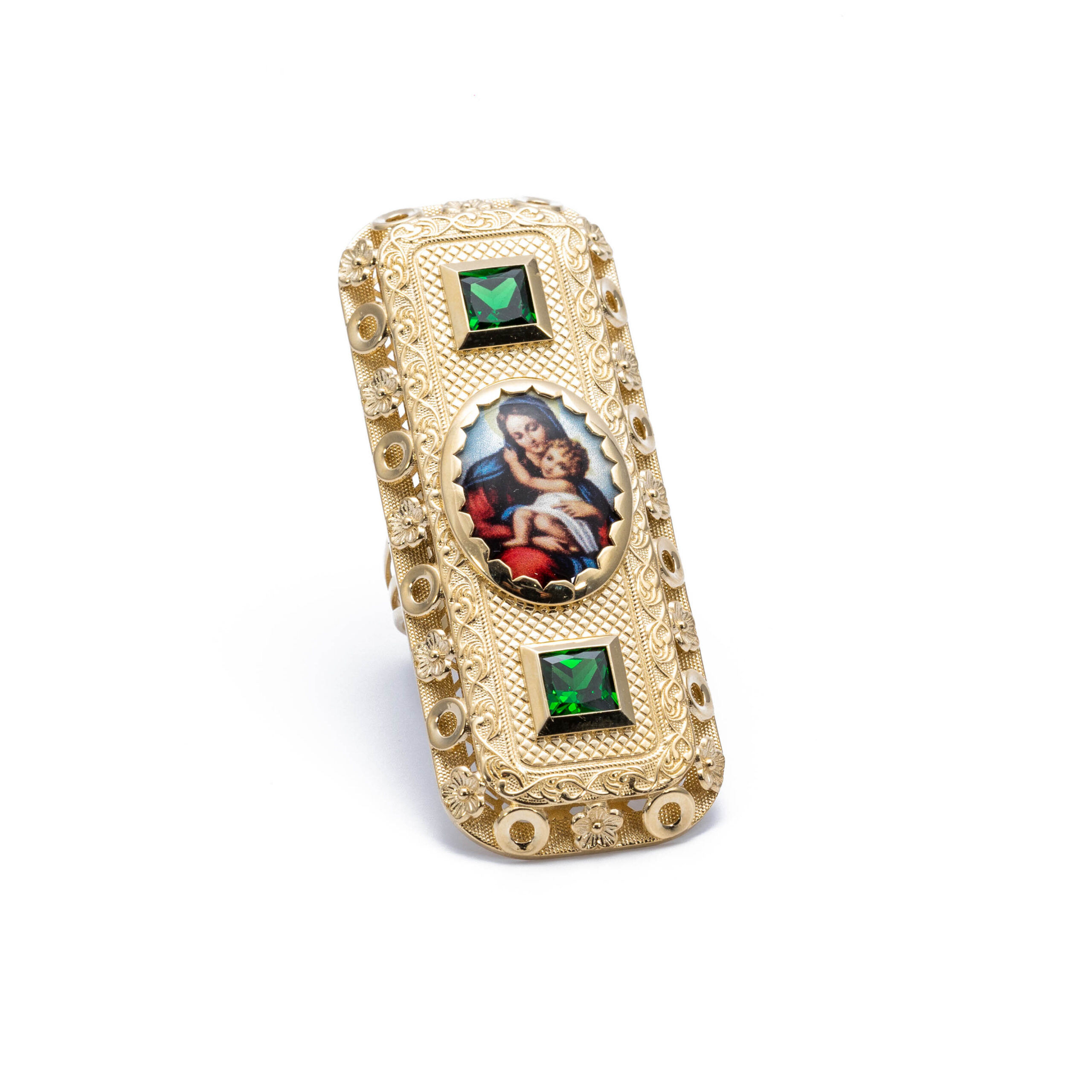 14K Női arany Szűz Mária zöld cirkónia köves gyűrű