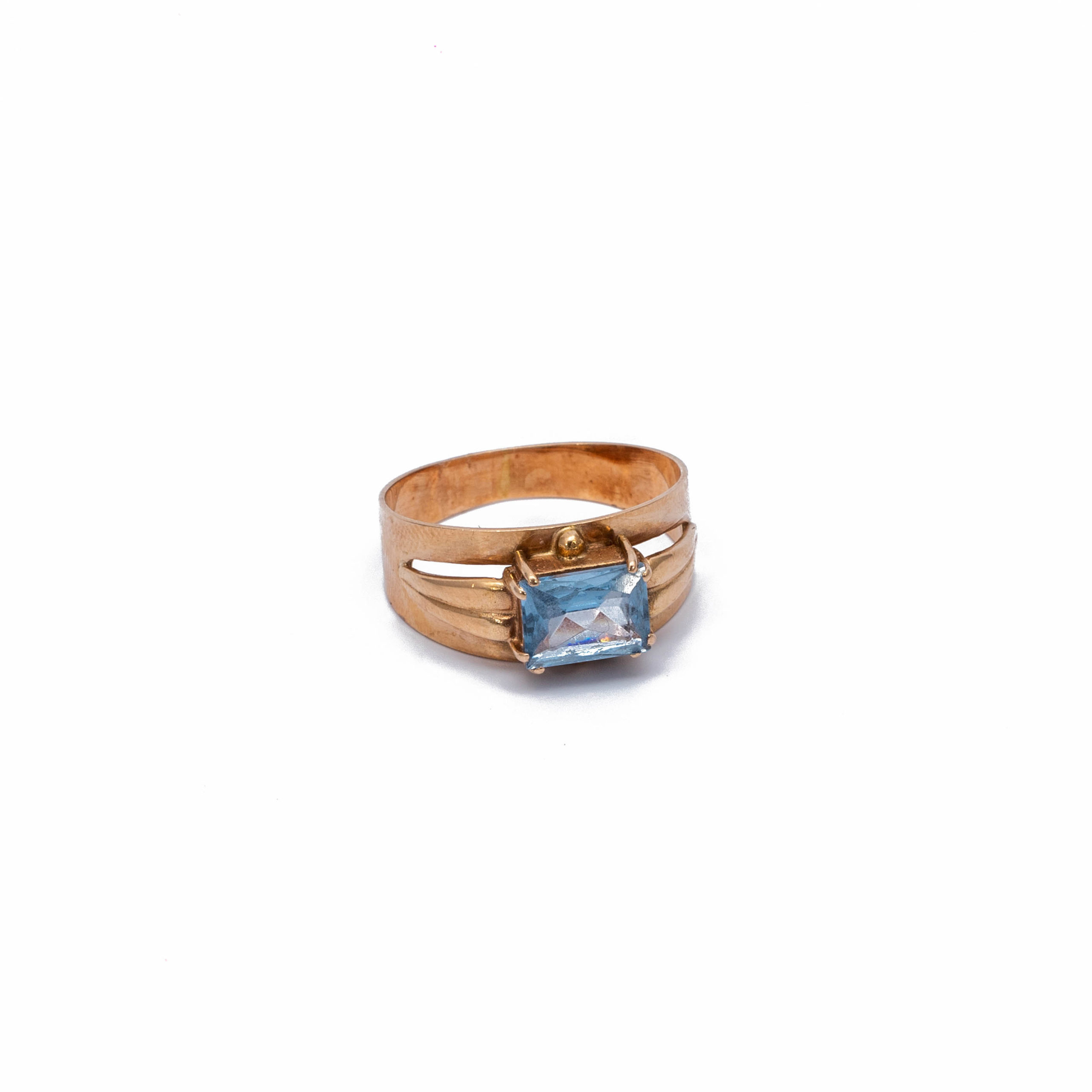 14K Női arany fantázia gyűrű kék cirkónia kővel