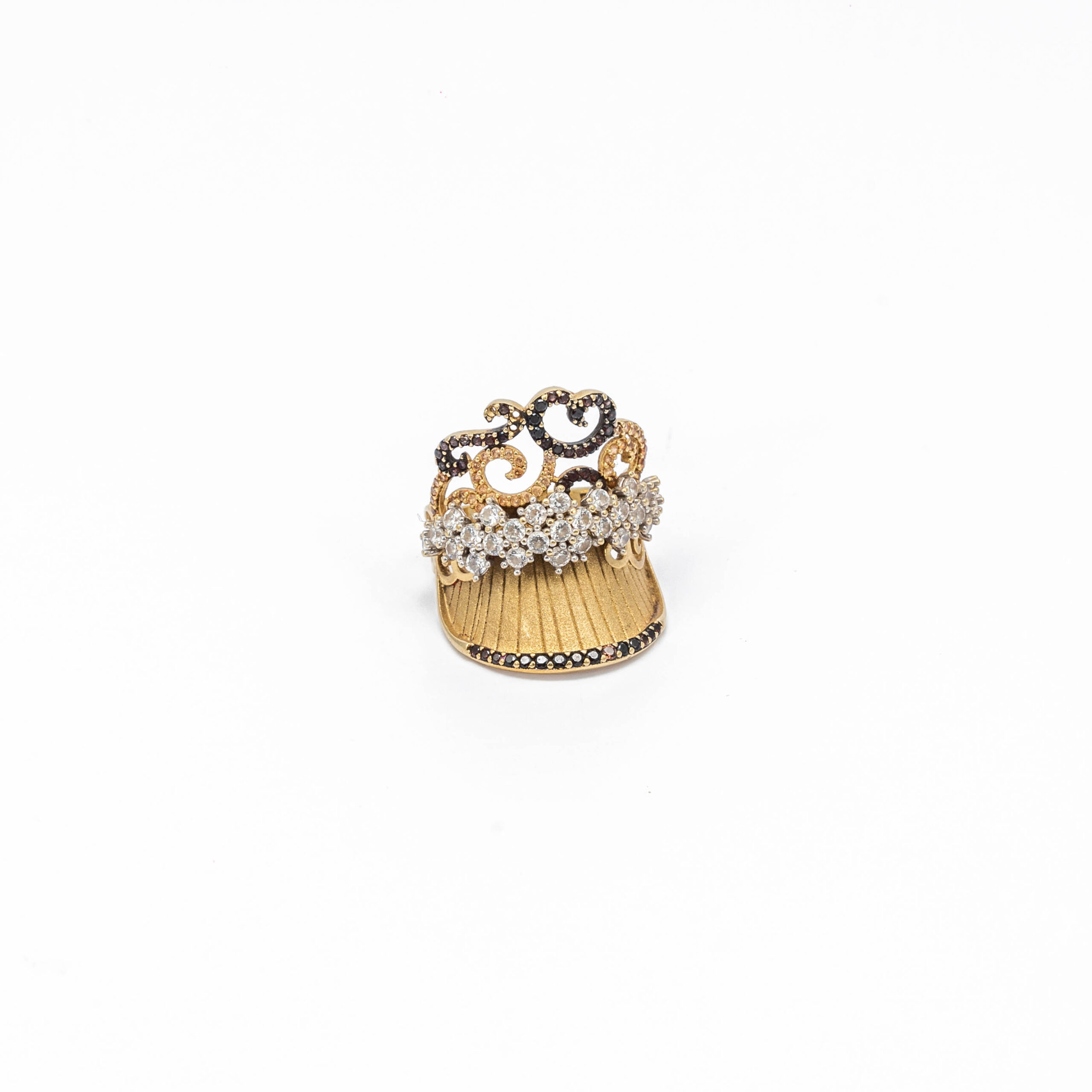 14K Női arany fehér-barna cirkónia köves gyűrű