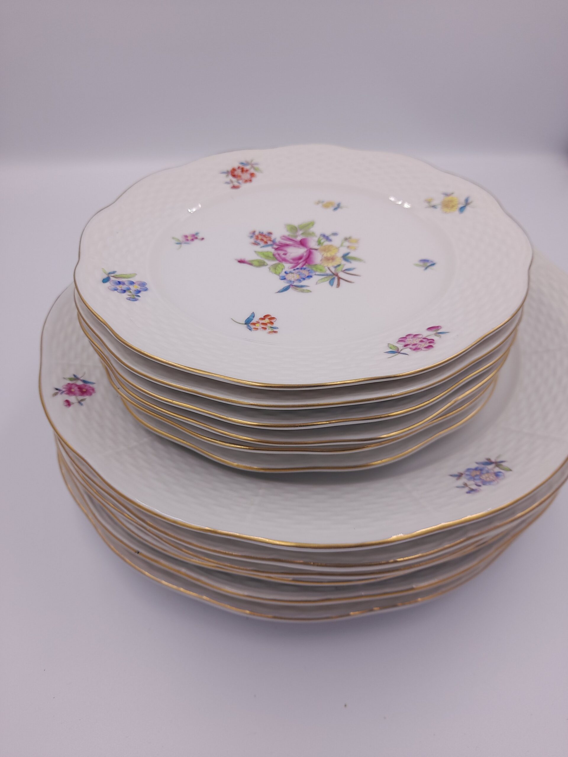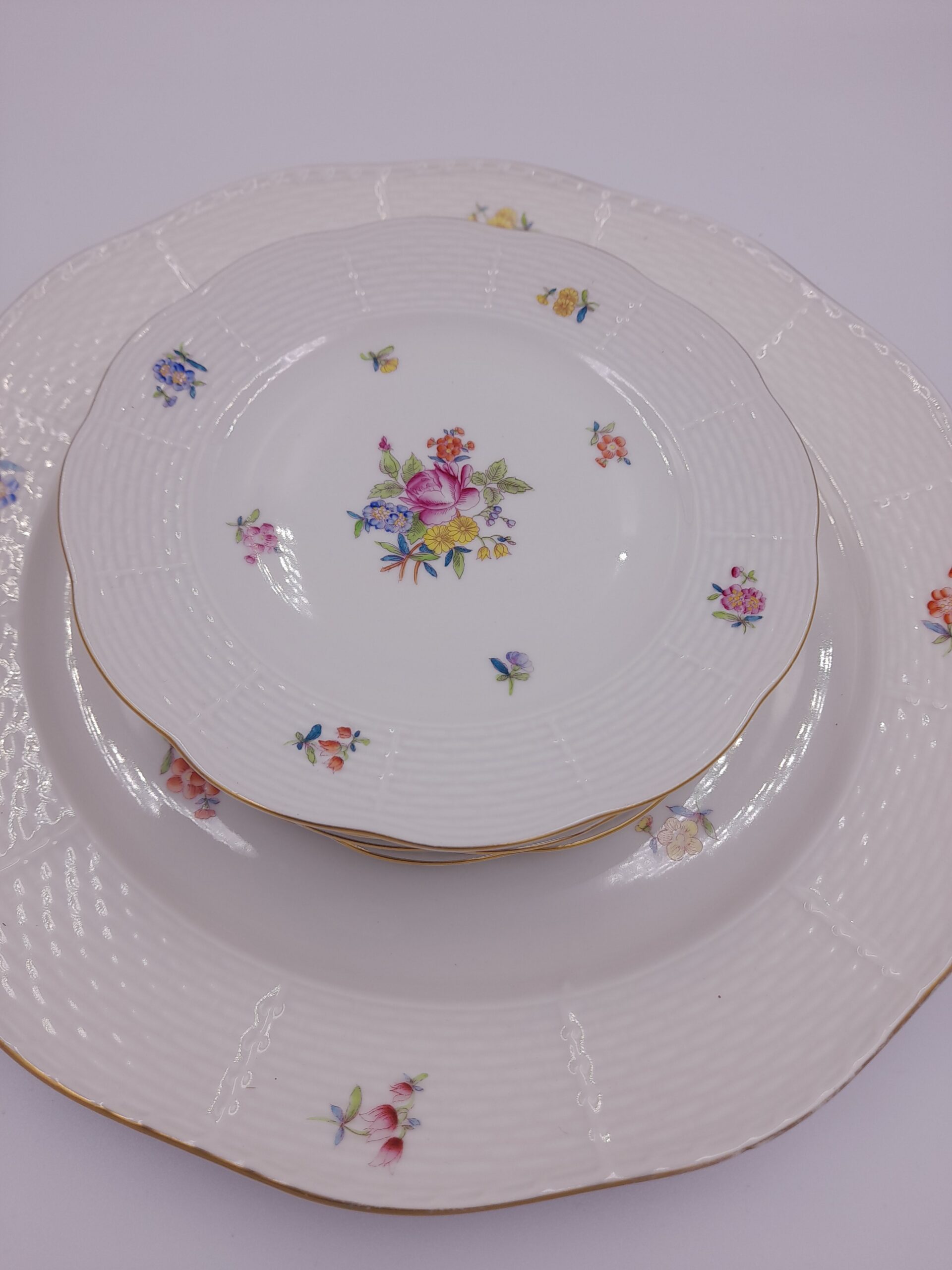 Antik Herendi 32 db-os étkészlet Nanking Multicolor mintával, 1940-es évekbeli pecséttel, korának megfelelő állapotban.