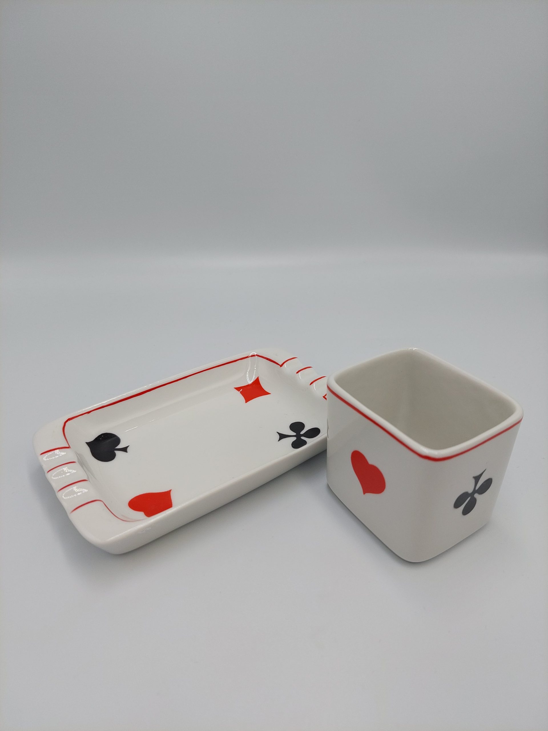 Hollóházi dohányzó szett, pókermintával.