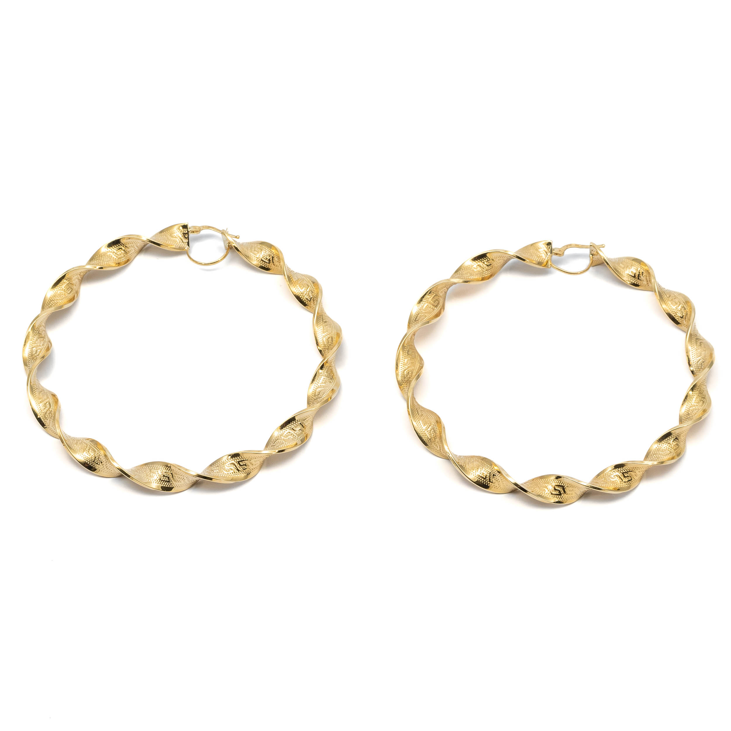 14K Női arany csavart karika görög mintás villás kapcsos fülbevaló