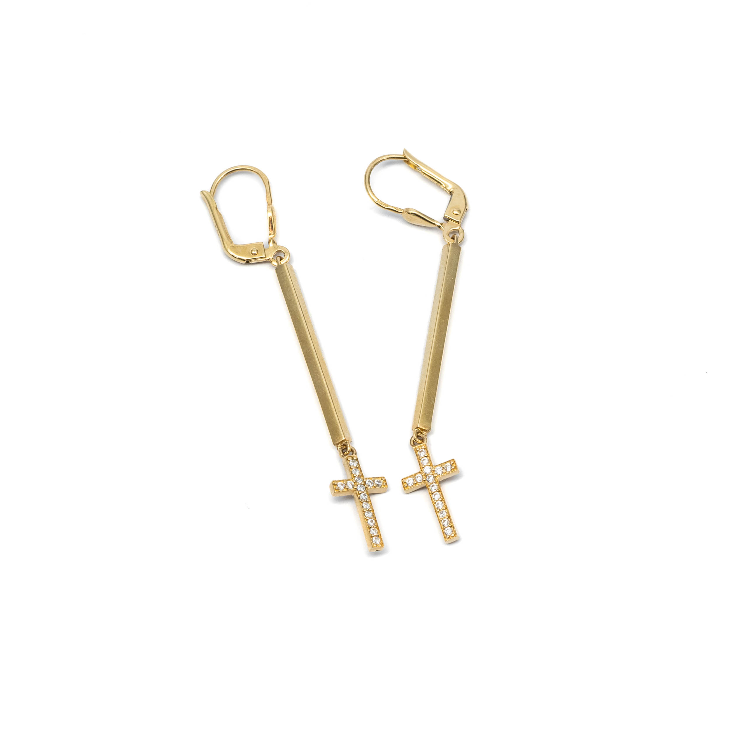 14K Női arany lógós kereszt charmmal patentzáros fülbevaló
