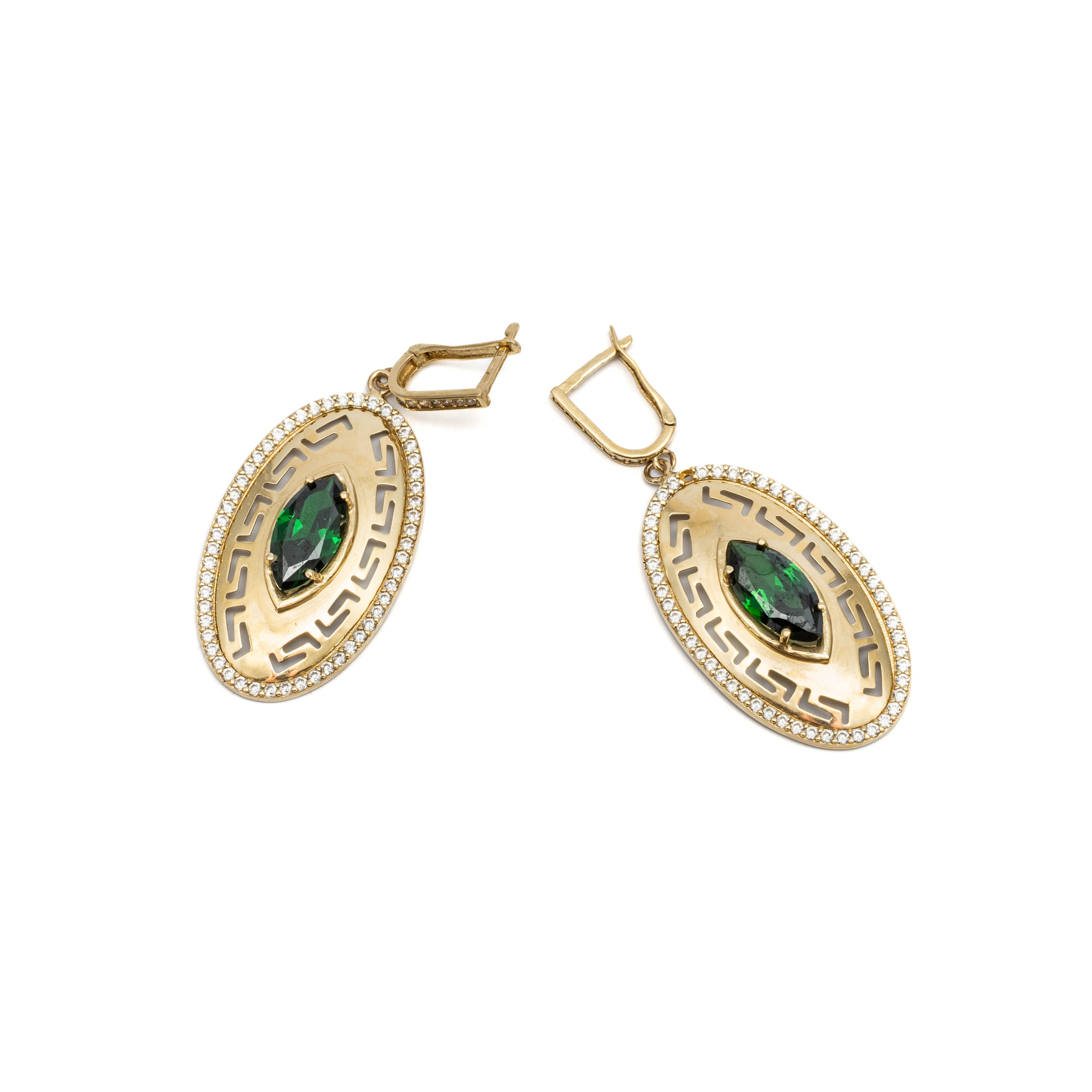 14K Női arany fantázia zöld cirkónia köves francia kapcsos fülbevaló