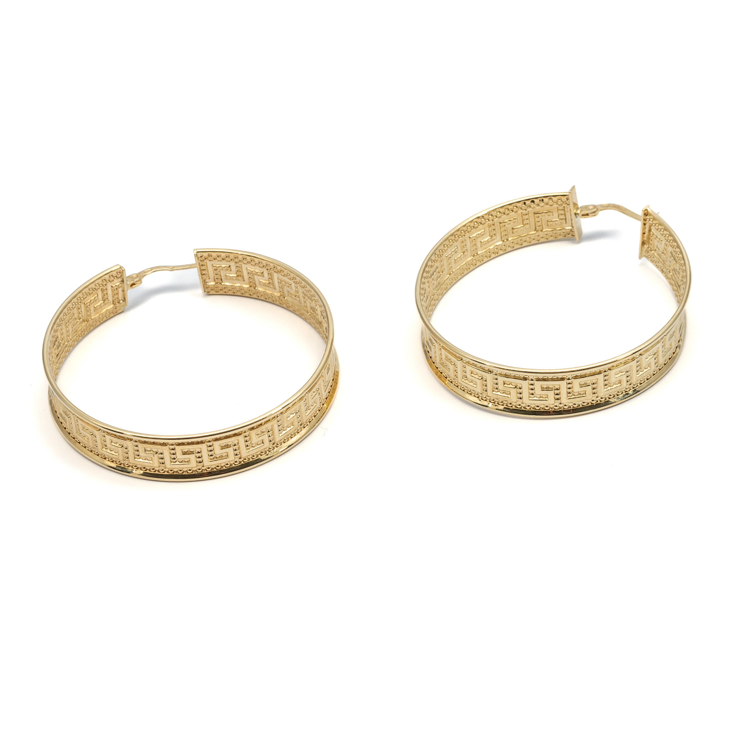 14K Női arany karika görög mintás villás kapcsos fülbevaló