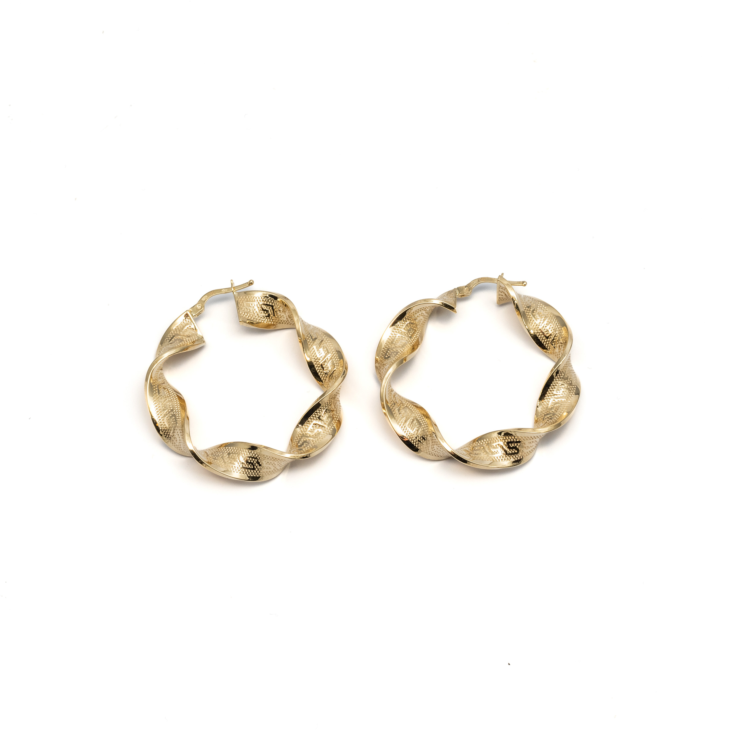 14K Női arany karika csavart villás kapcsos fülbevaló