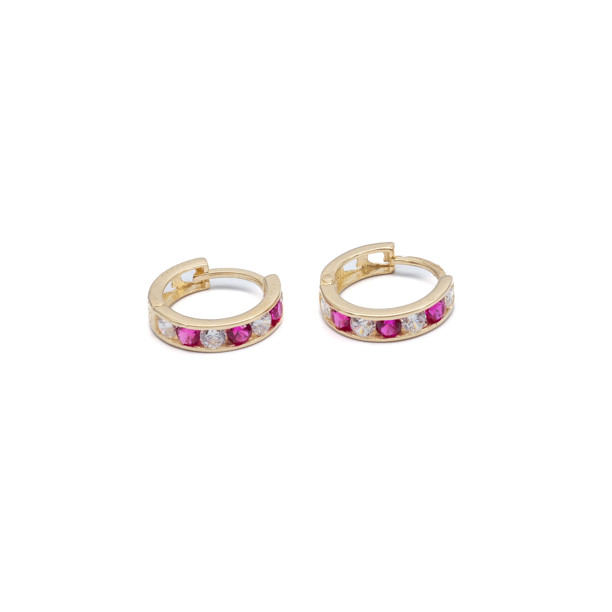 14K Gyerek arany fehér-ciklámen cirkónia köves bepattintós fülbevaló