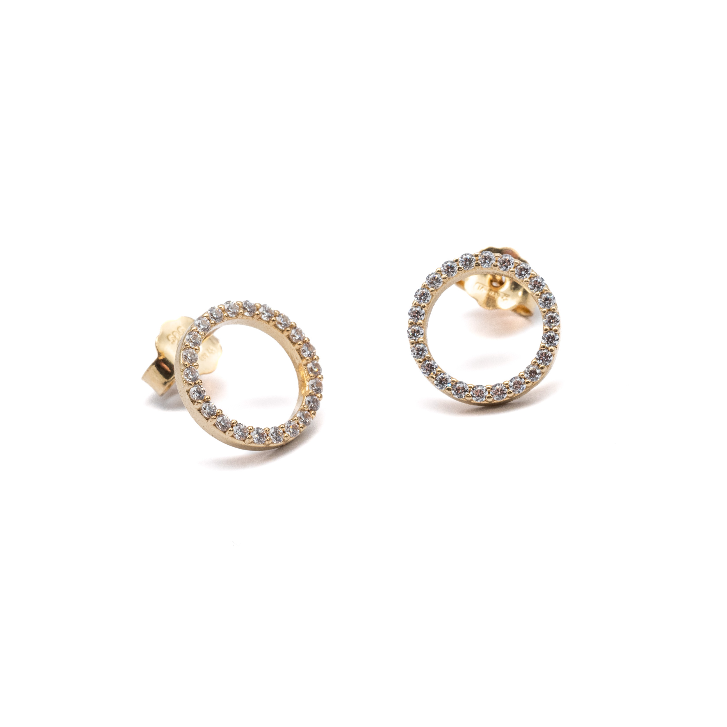 14K Női arany kerek cirkónia köves stekkeres fülbevaló