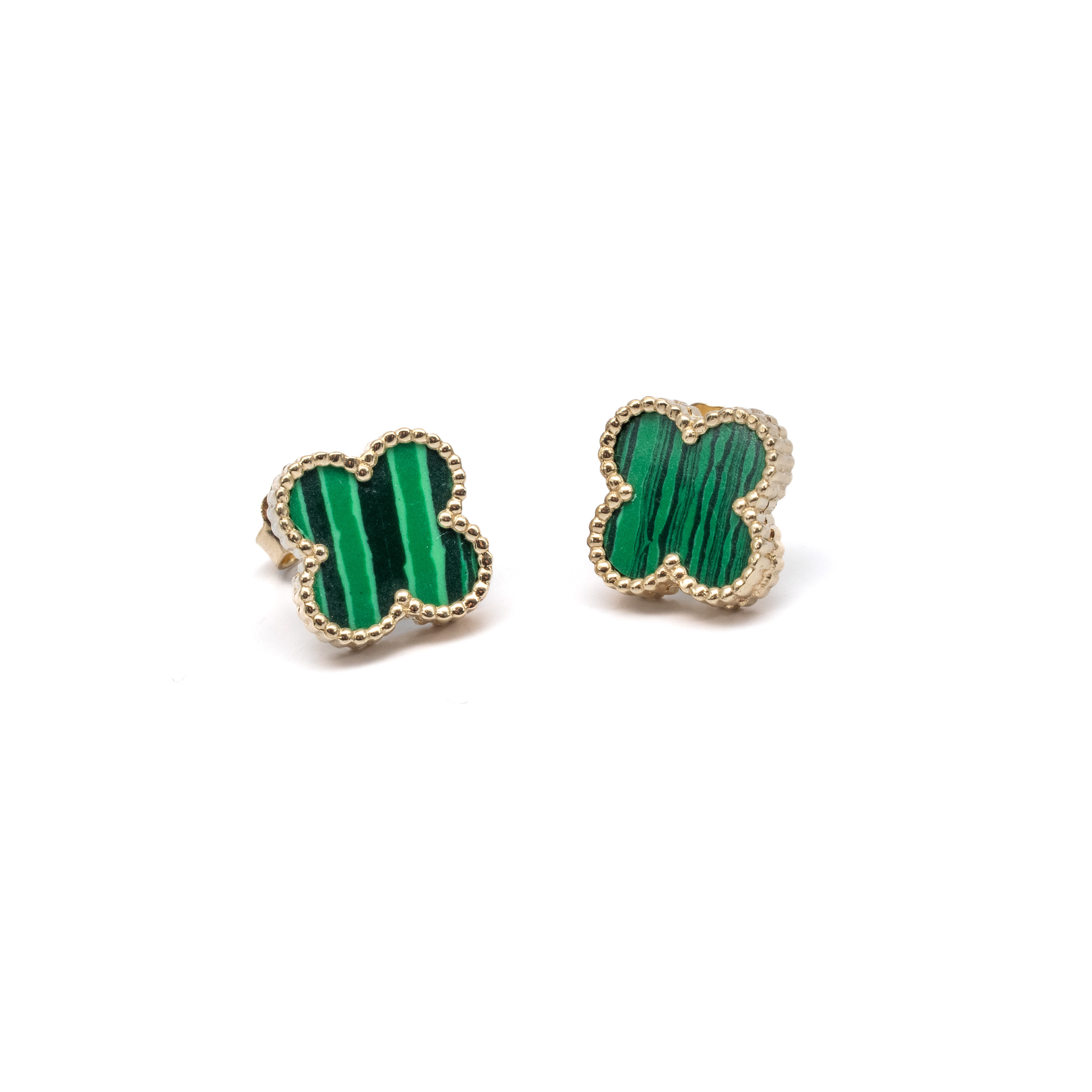 14K Női arany zöld lóhere stekkeres fülbevaló