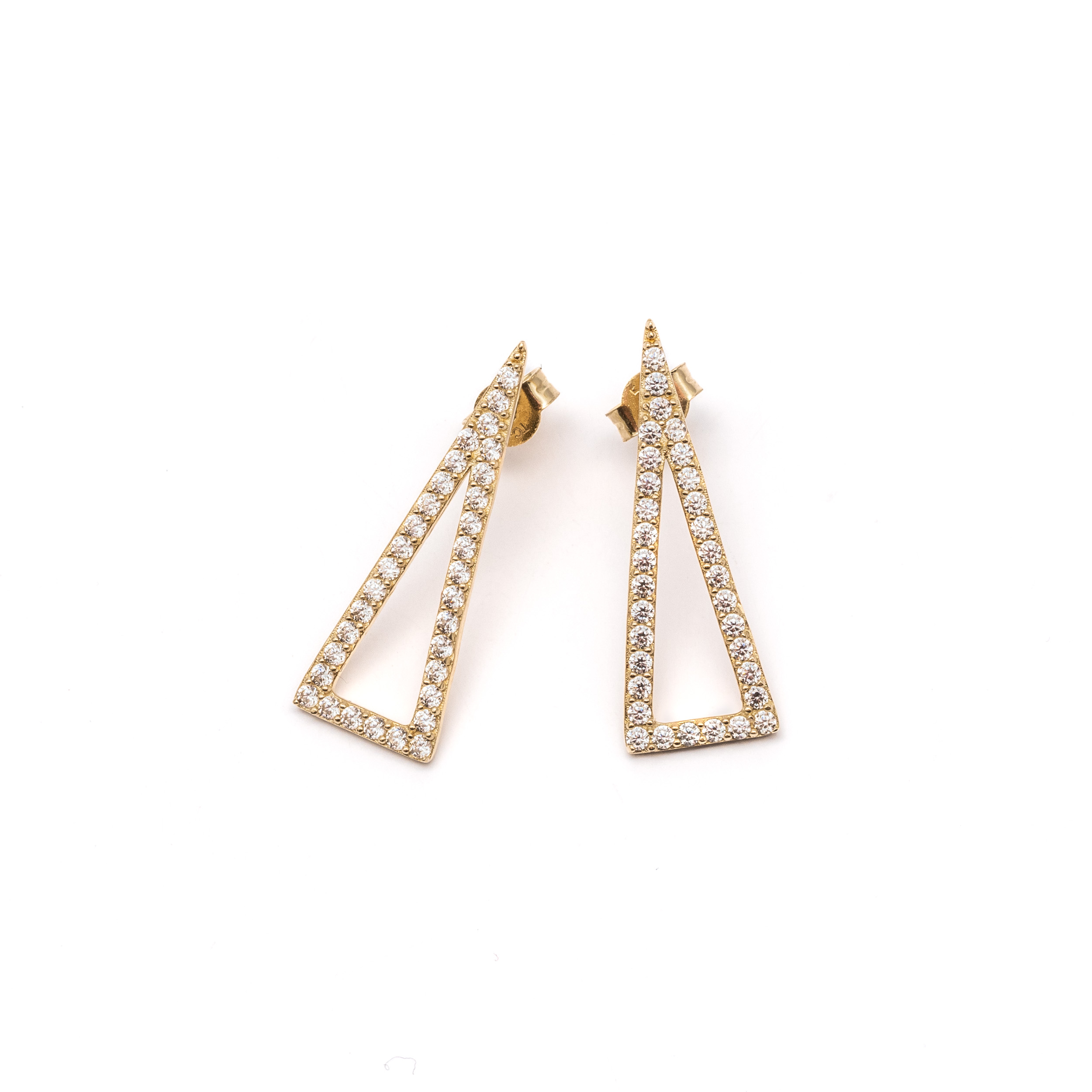 14K Női arany háromszög cirkónia köves stekkeres fülbevaló