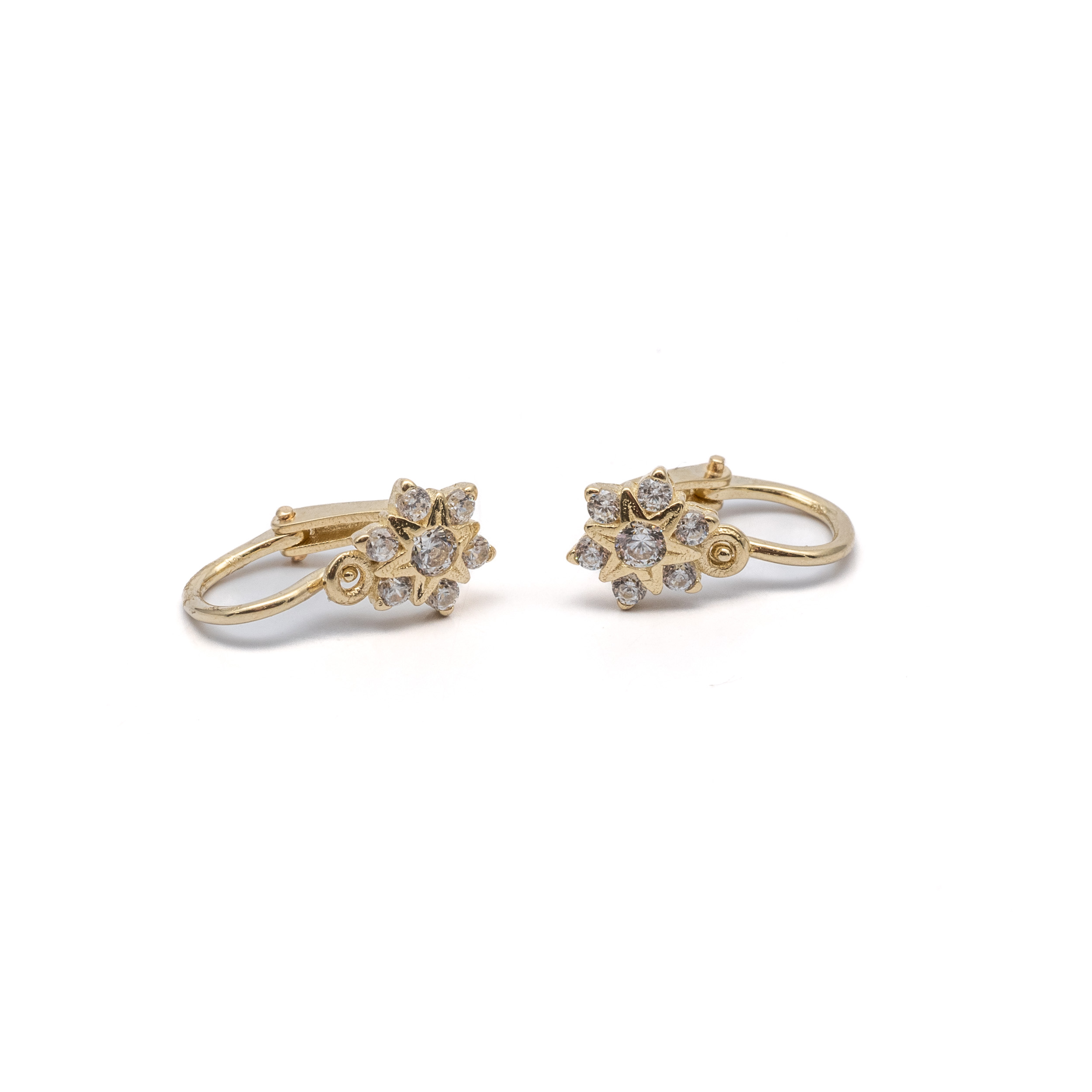 14K Női arany csillag mintájú cirkónia köves elől kapcsos fülbevaló