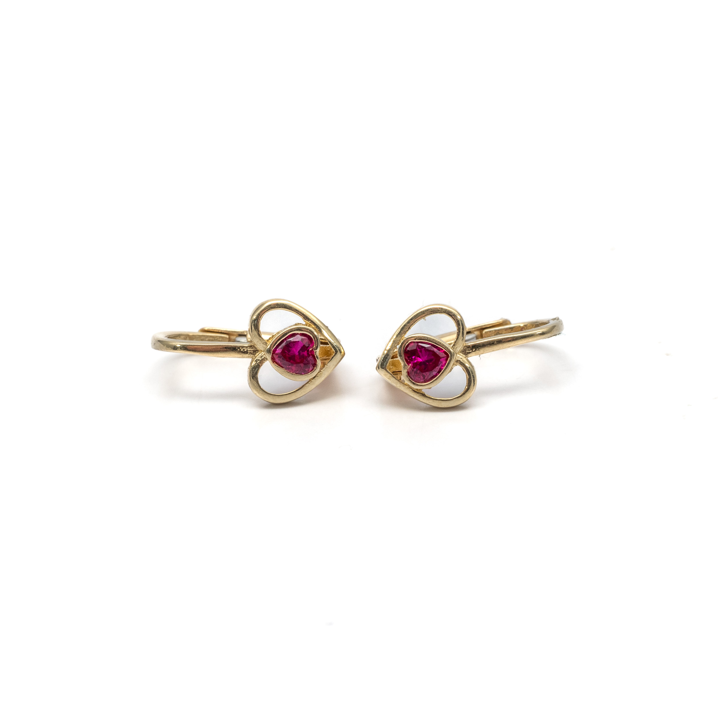 14K Női arany szív motívumos ciklámen cirkónia köves patentzáras fülbevaló