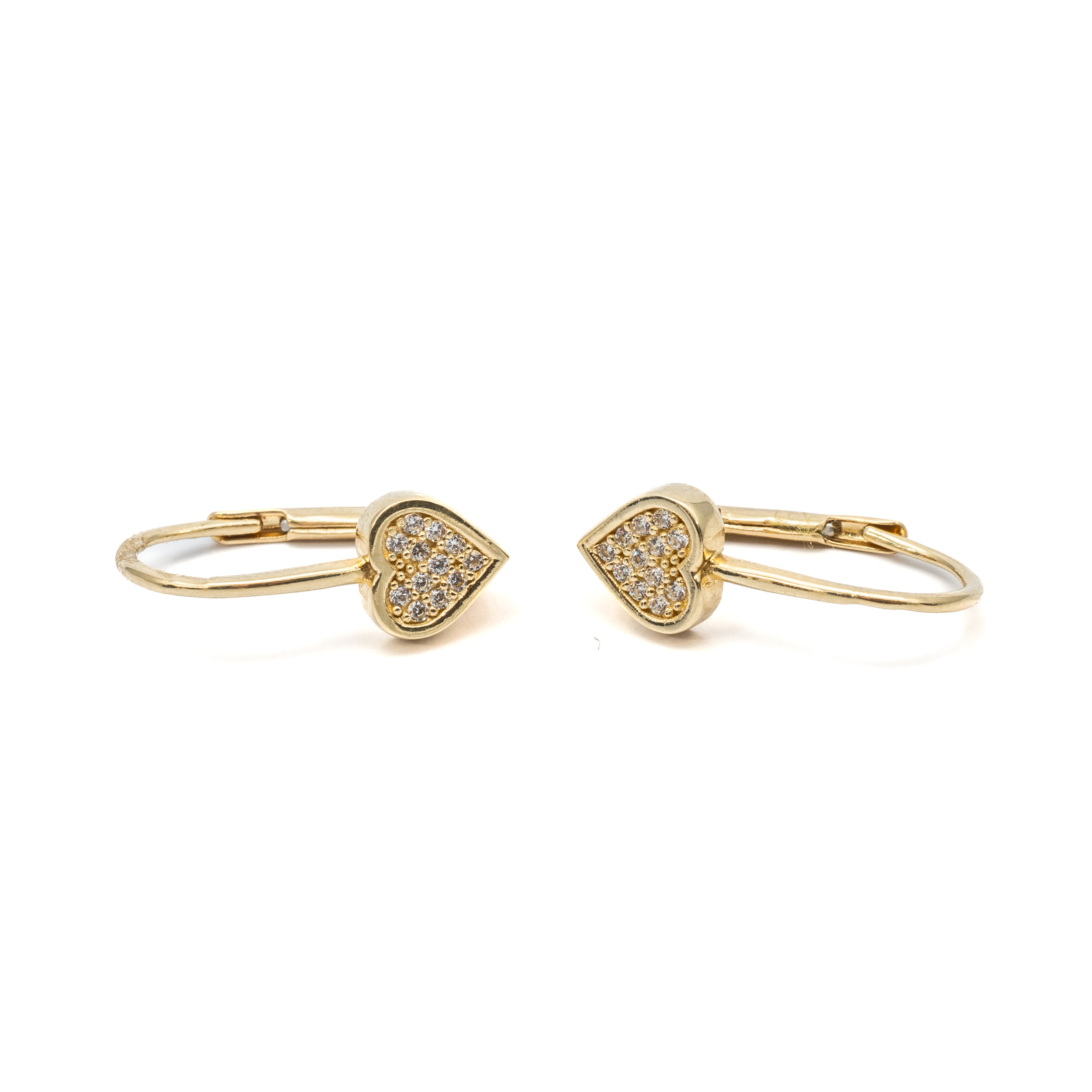 14K Női arany szív cirkónia köves patentzáras fülbevaló
