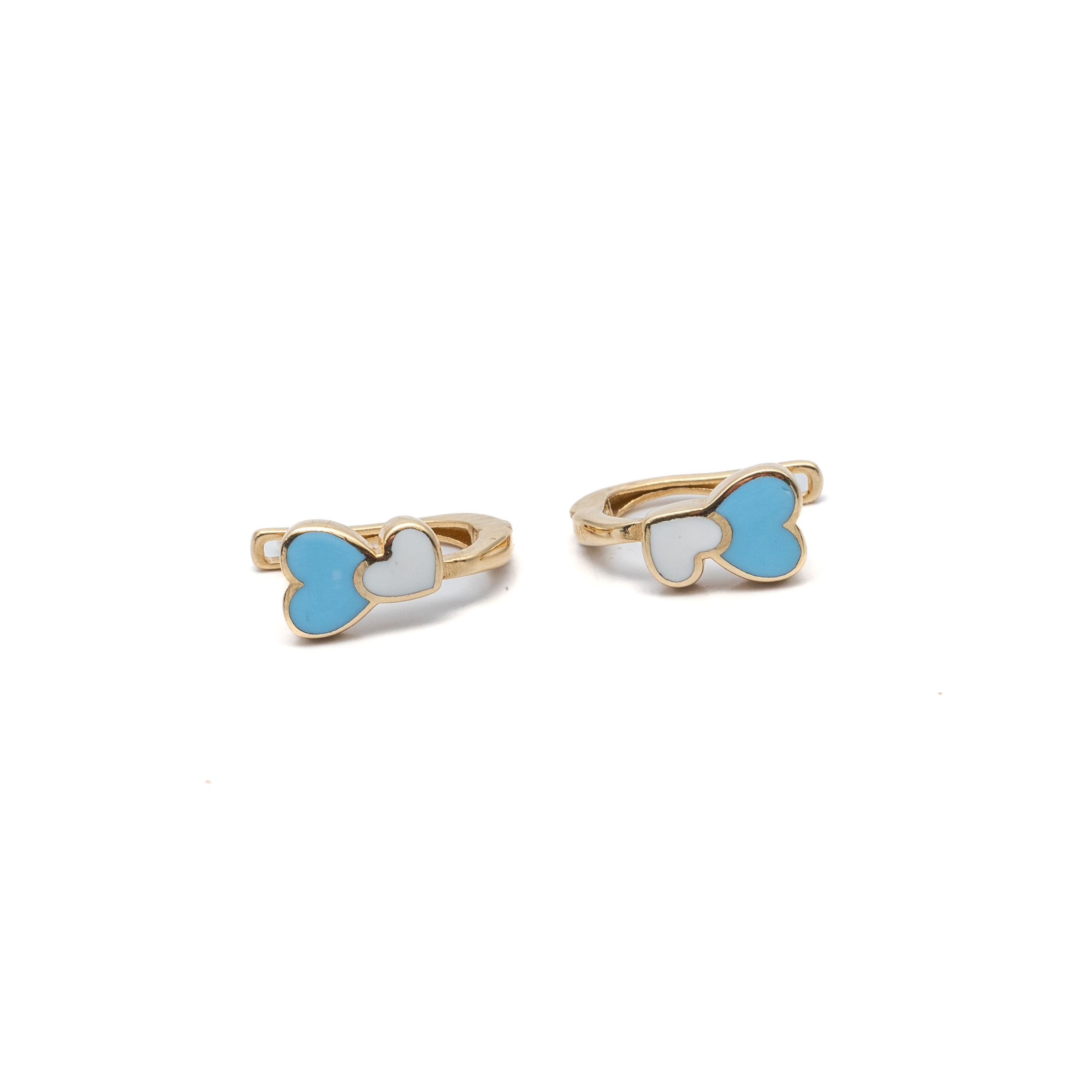 14K gyerek arany fehér-kék összefonódott szívek mintájú francia kapcsos fülbevaló