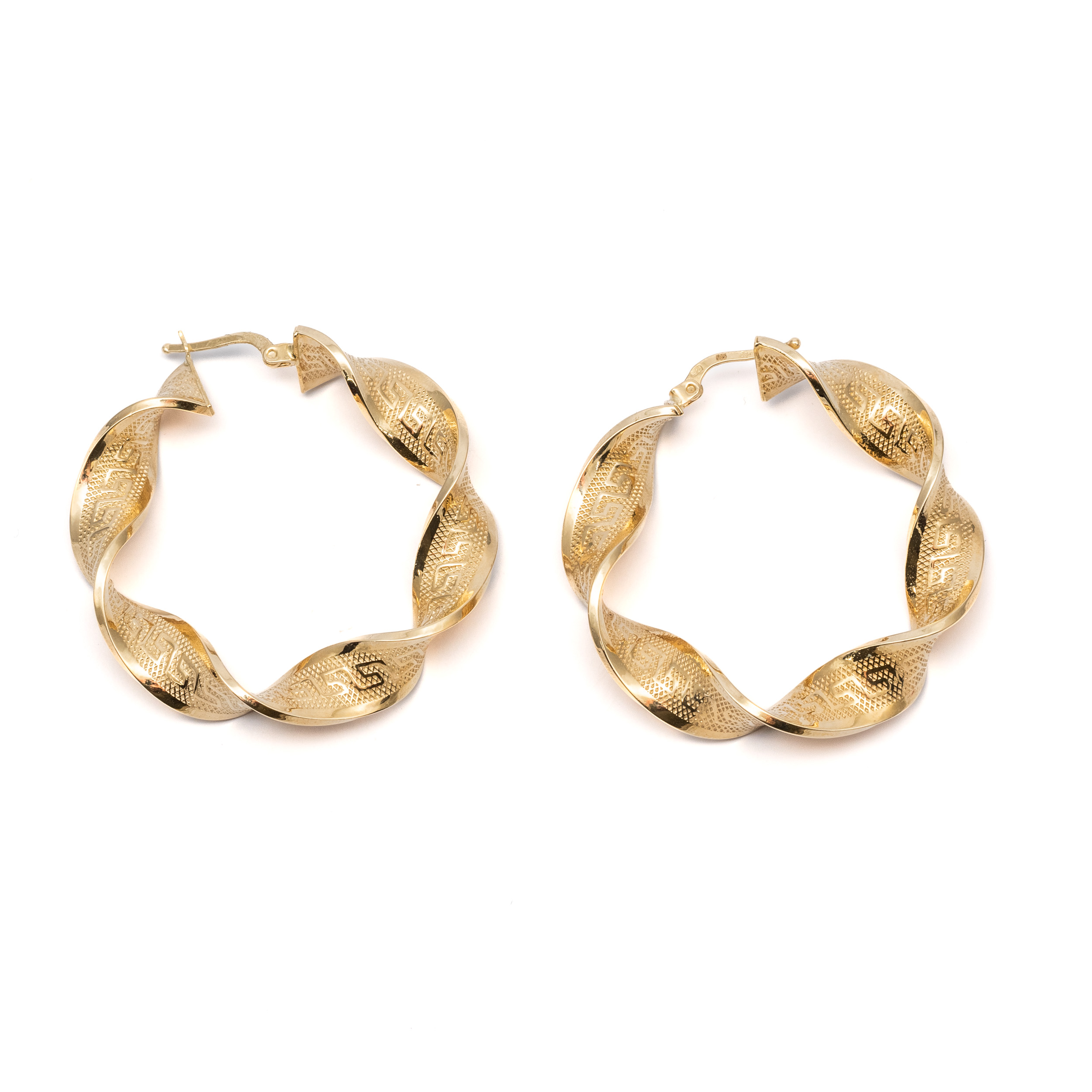 14K Női arany karika csavart villás kapcsos fülbevaló