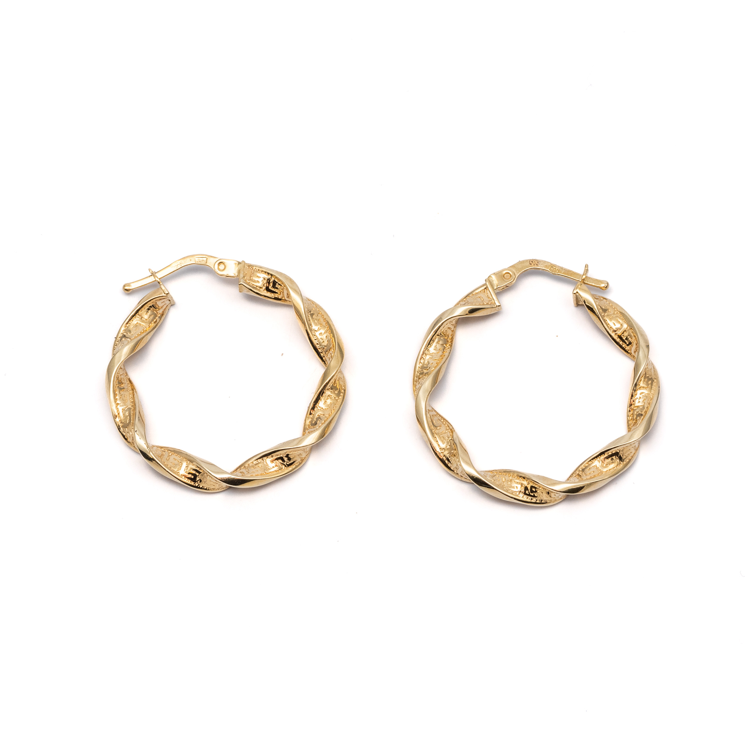 14K Női arany csavart karika görög mintás villás kapcsos fülbevaló
