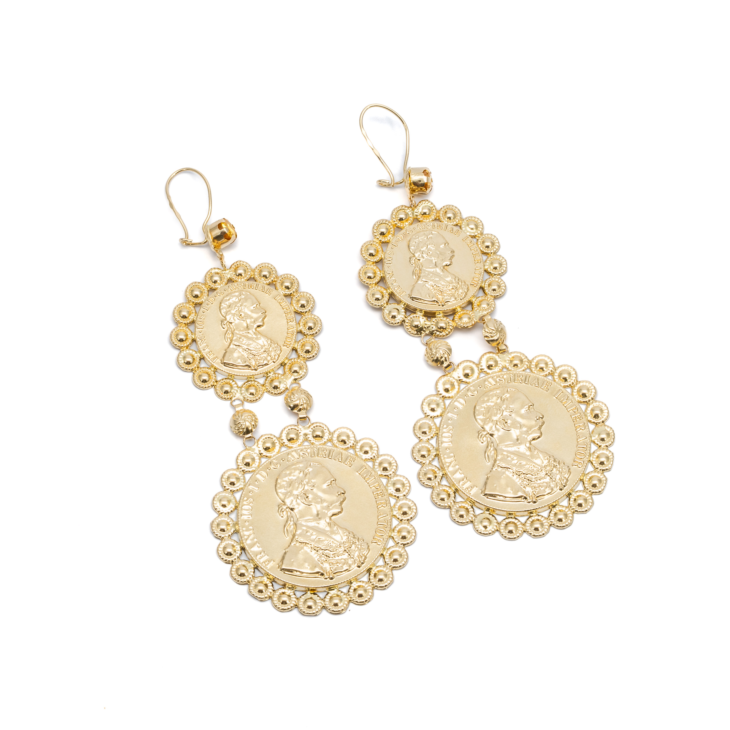 14K Női arany I.Ferenc József osztrák császár és magyar király portréjával ellátott beakasztós kapcsos fülbevaló